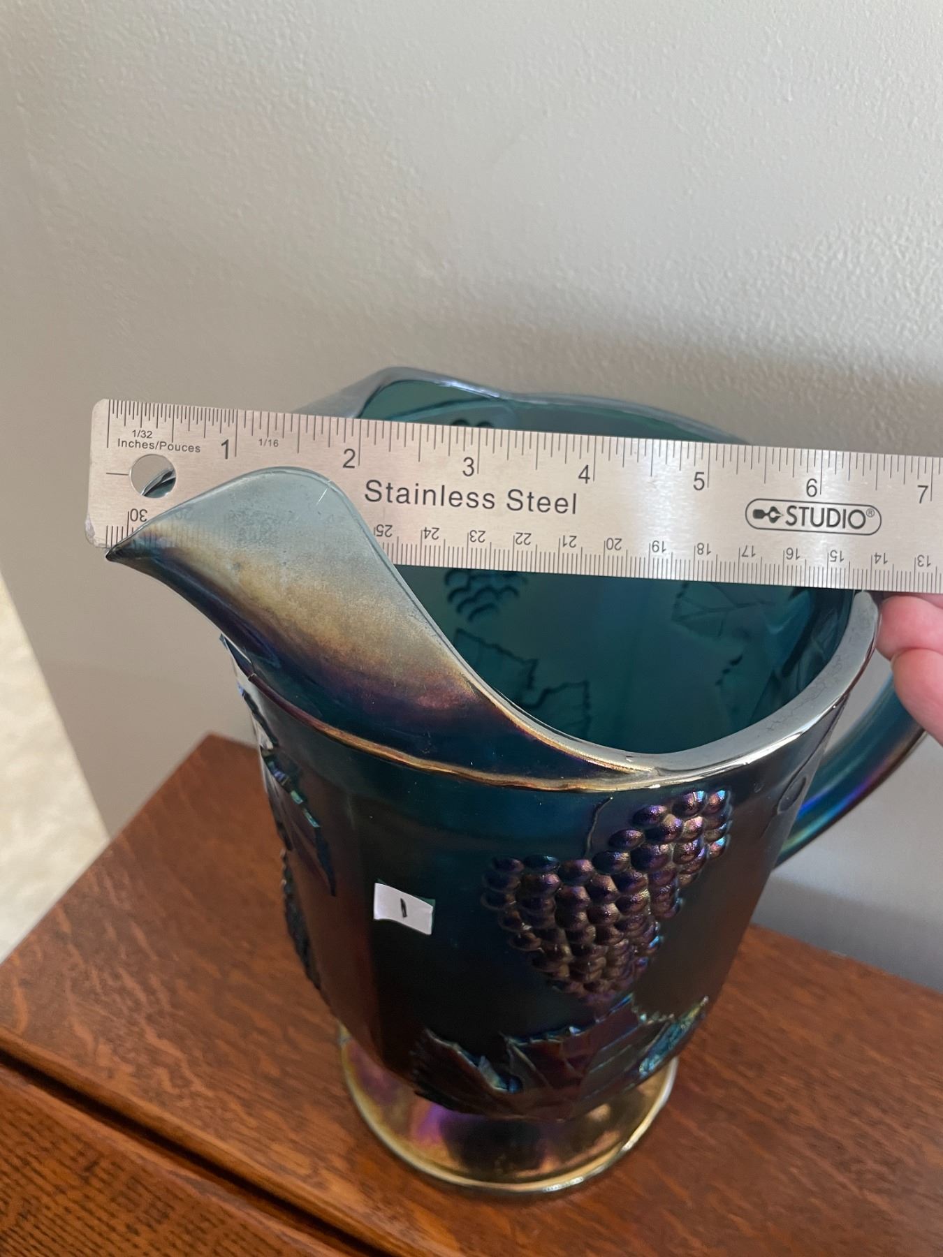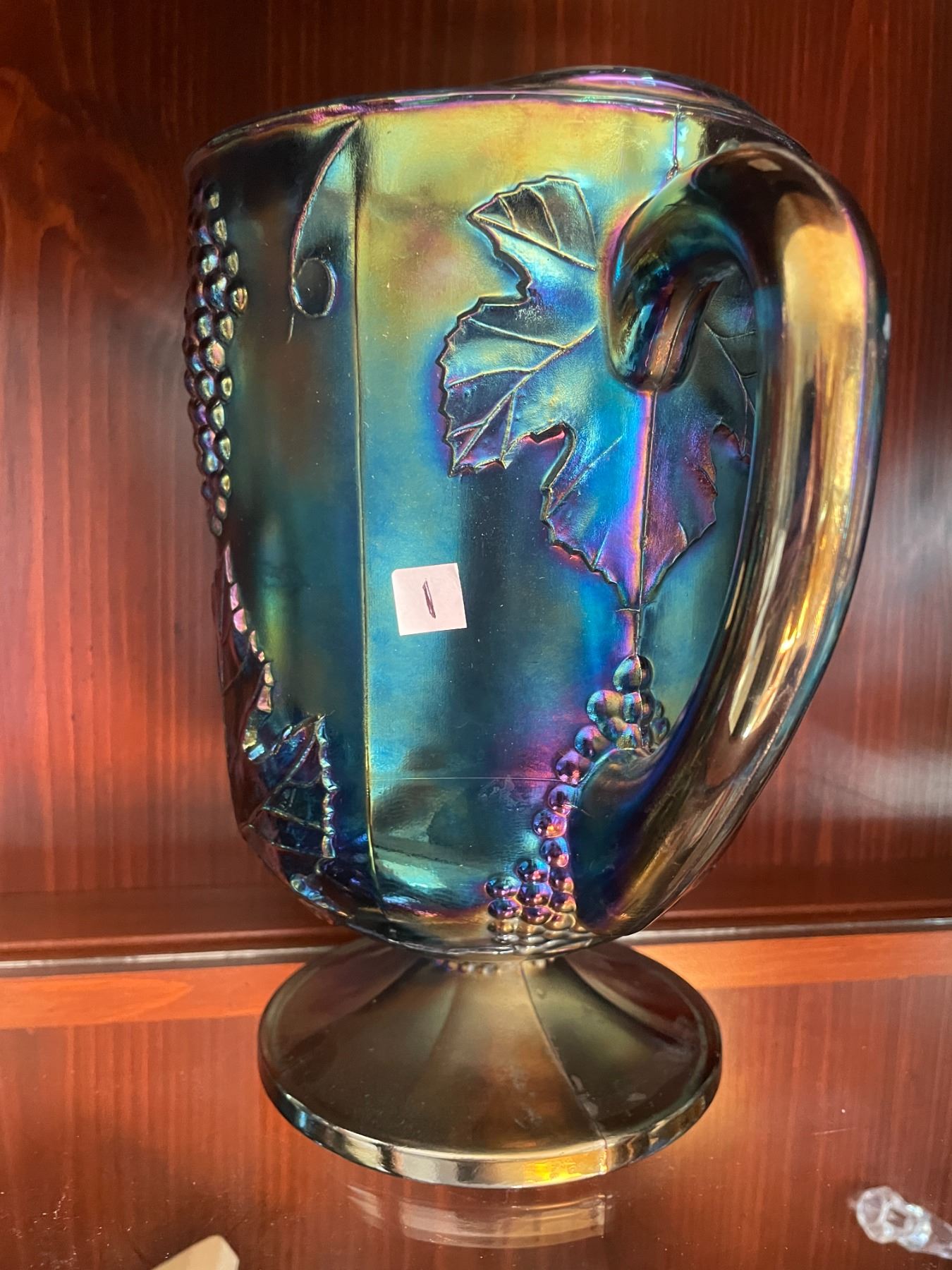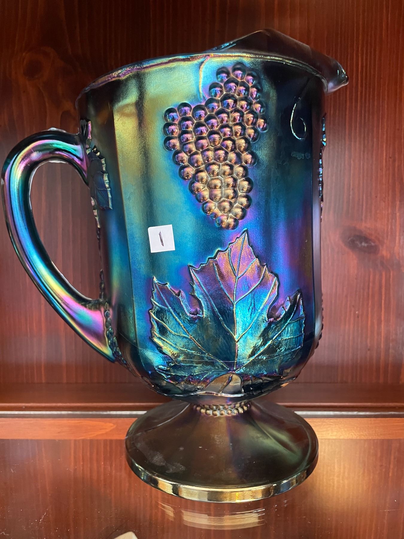 Beautiful, Vintage, Indiana, blue, iridescent, carnival glass pitcher, in the harvest grape pattern