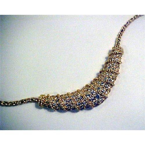 Offered here is a fine Swarovski necklace from the late 20th century. It is a very understated and elegant necklace with pave rhinestones seperated with gold rope bands on a cresent shaped bar. The condition is perfect. The length is 15-16".