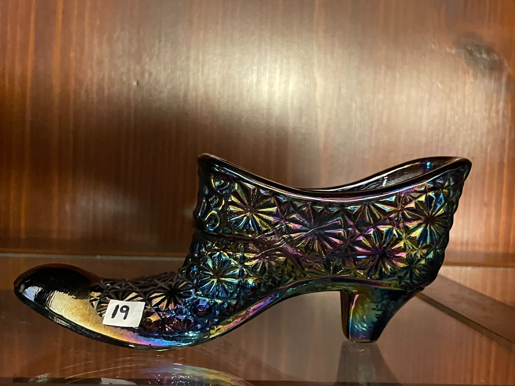 Beautiful, carnival glass, Daisy and Button pattern, shoe