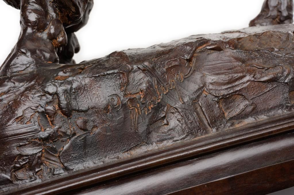 Beautiful large original bronze of a buffalo entitled “Callin’ the Bluff” by noted Wildlife artist Tim Shinabarger; #31/35; approx. 16-1/2” x 23-1/2” x 8”. Shinabarger is a listed award winning artist with works in the Autry Museum, Los Angeles, CA and the National Museum of Wildlife Art, Jackson, WY (to name a few of the venues where his artistry is on display). Would easily be a striking centerpiece in any hunter’s game room or collector of fine art’s library or office. Est.: $3,000-$5,000.