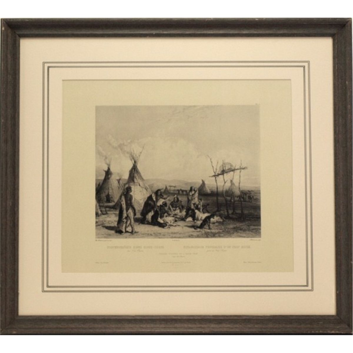 Beautiful lithograph from original etching "Funeral Scaffold of a Sioux Chief near Ft. Pierre SD". Originally created by Karl Bodner in 1839, image size 15" X 18".