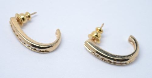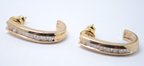 .5ctw Diamond half hoop earrings. 1.9 DWT. 3/4". Backs are not gold.
