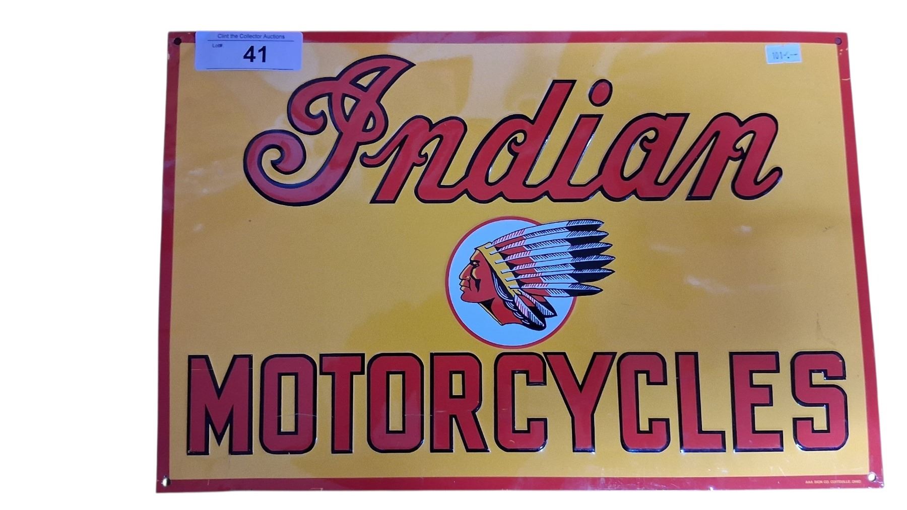 Beautiful reproduction tin Indian Motorcycles sign, great colours 17"x11"