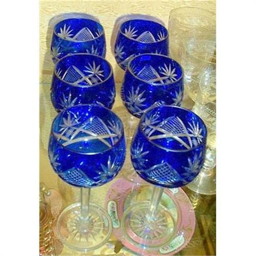 Beautiful set of 6 cups, made by French Baccarat not signed. Has beautiful colour blue cobalt , in good fine crystal that create a very fine sound. All are in perfect conditions, without any crack or chips. The foot it?s very elegant. -----------