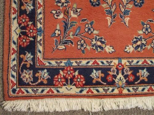 Rug: Handmade Semi Antique Persian Sarouk; Material: Fine quality baby lamb's wool pile, all natural vegetable dye; Size: 6.5 x 2.8 feet; Foundation: Cotton; Design: Persian Sarouk; Origin: Iran