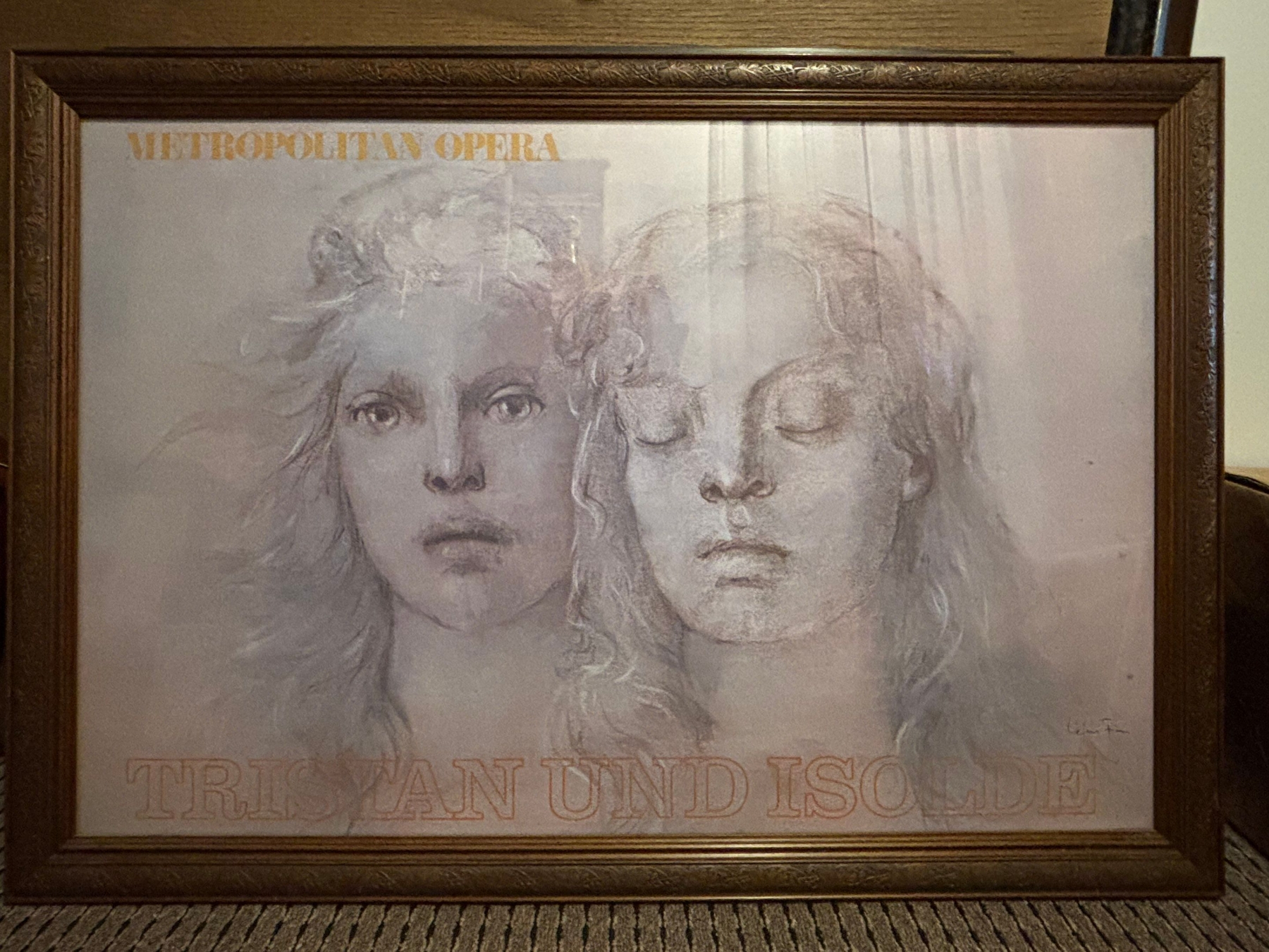 Beautifully Framed Tristan und Isolde poster, signed by Leonor Fin New York . Amazing condition no fading 39x27 original retail price was $600