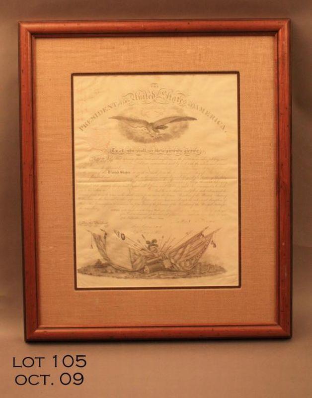 Beautifully framed and matted original military  appointment for Charles S. Winder to the rank of  Second Lt., Third Regiment U.S. Artillery.  The  appointment is dated July 3, 1852 and signed by  President Millard Fillmore. A historic piece ofAmericana and in overall very good condition;  would be interesting to further research the  military career of Lt. Winder. Est.:  $600-$900.