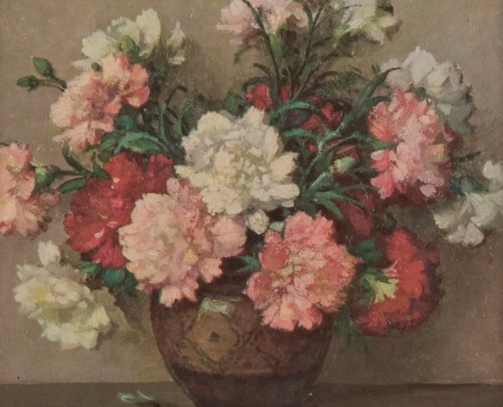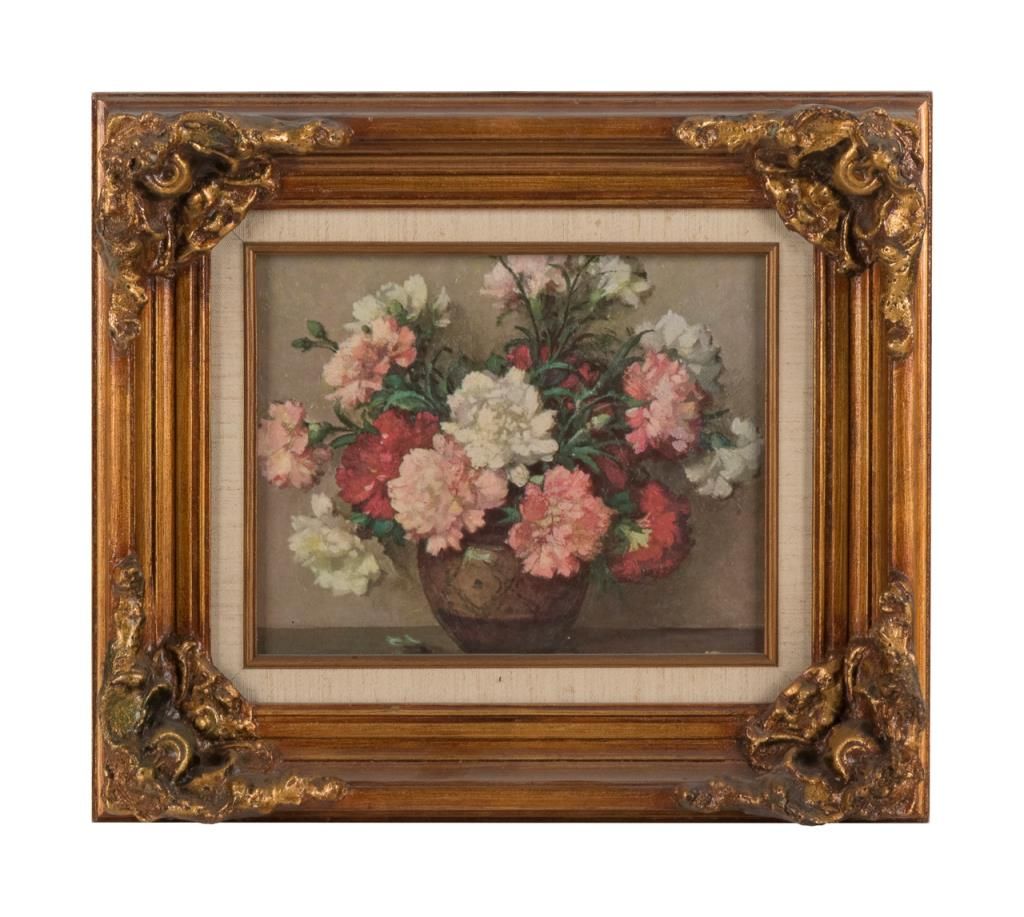Beautifully framed oil still life of flowers, no visible signature by artist, approx. 13” x 15”. Est.: $75-$125.