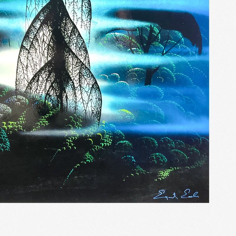 "Beauty Beyond Believing" is a limited edition printer's proof serigraph on paper by Eyvind Earle (1916-2000), numbered 2/5 and hand signed by the artist. Includes Letter of Authenticity. Measures approx. 39.5" x 48" (border), 36" x 45" (image). There are two very small horizontal scuffs on the bottom-right corner of the image that is only visible upon close inspection.