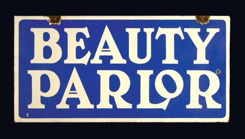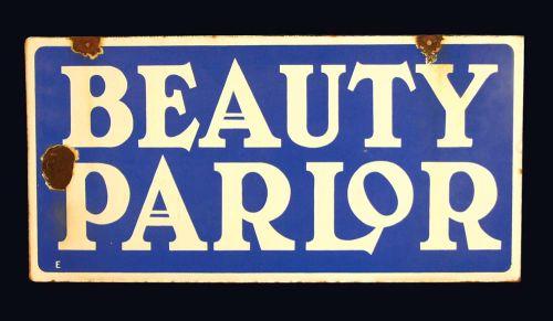 Beauty Parlor Porcelain Sign, two sided. Chip at 3:00 and 9:00 grommets otherwise good condition. 24 X 12 inches.