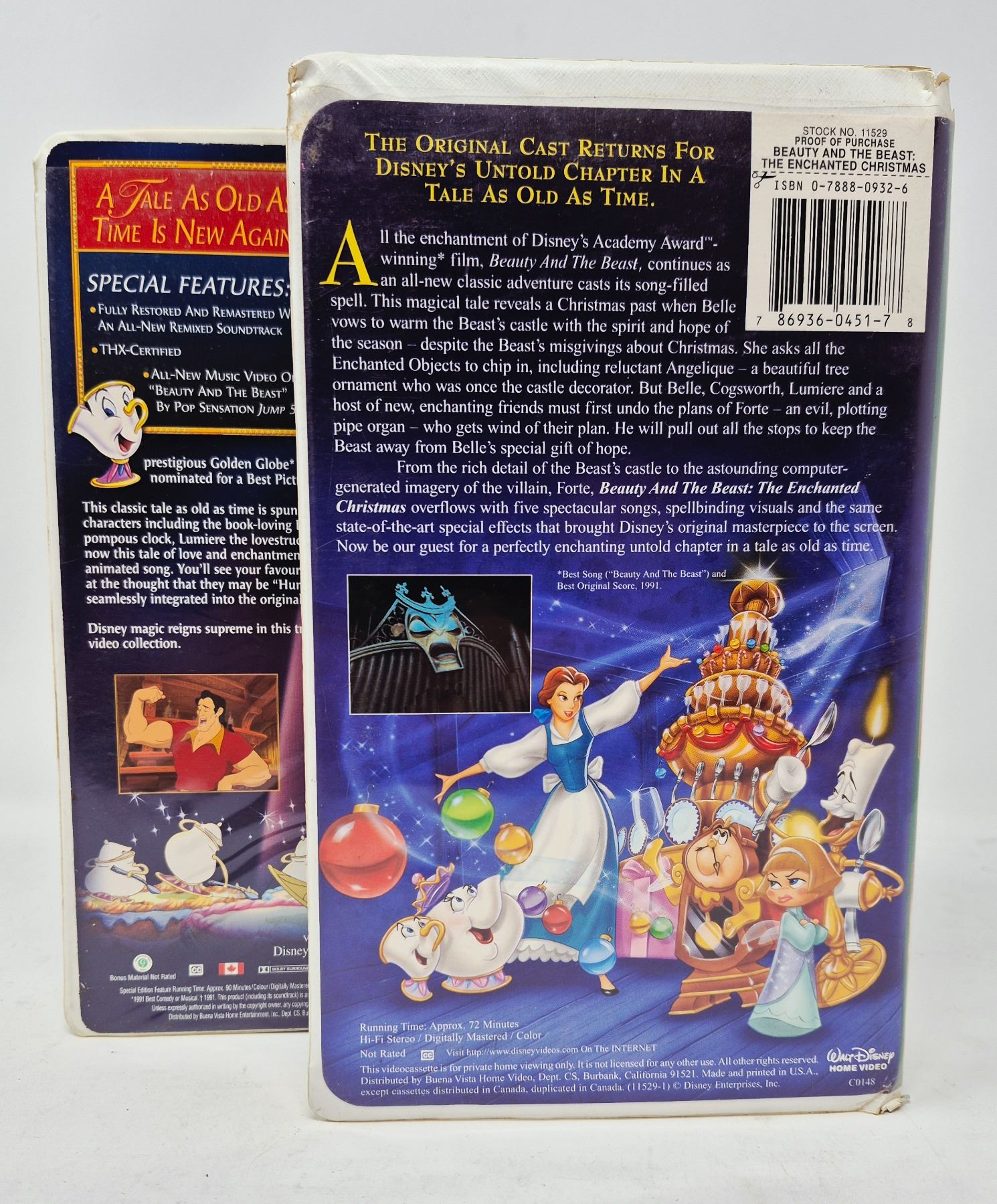 Two Disney VHS tapes: the Platinum Special Edition of “Beauty and the Beast” and “The Enchanted Christmas” sequel. Magical musical classics!