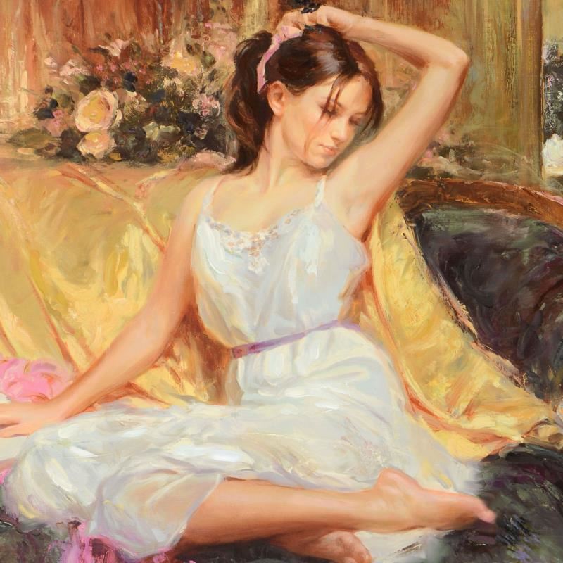 "Beauty" is a limited edition hand embellished giclee on canvas by Vladimir Volegov, numbered and hand signed by the artist. Measures approx. 32" x 24" (image).