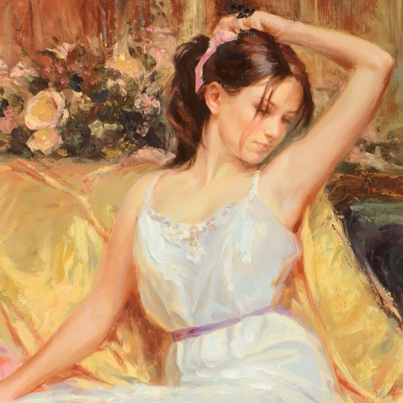 "Beauty" is a limited edition hand embellished giclee on canvas by Vladimir Volegov, numbered and hand signed by the artist. Includes Certificate of Authenticity. Measures approx. 40" x 30" (image).
