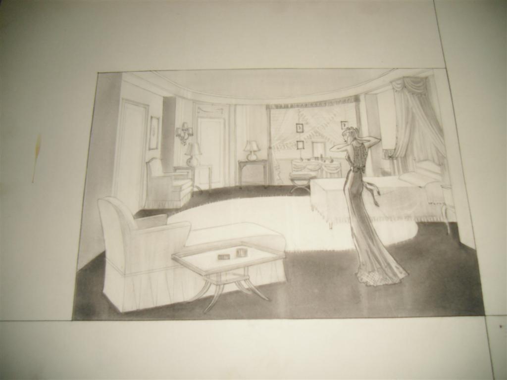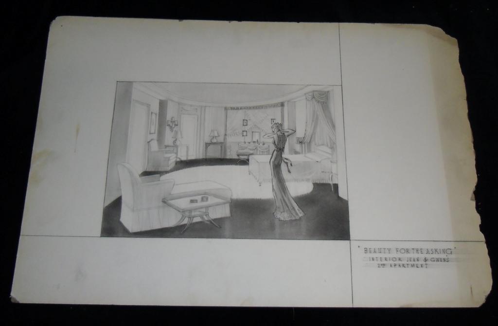 Beauty for the Asking (1939) - From the film starring Lucille Ball, this is the original hand drawn production artwork of the interior of her apartment. 30" x 19"