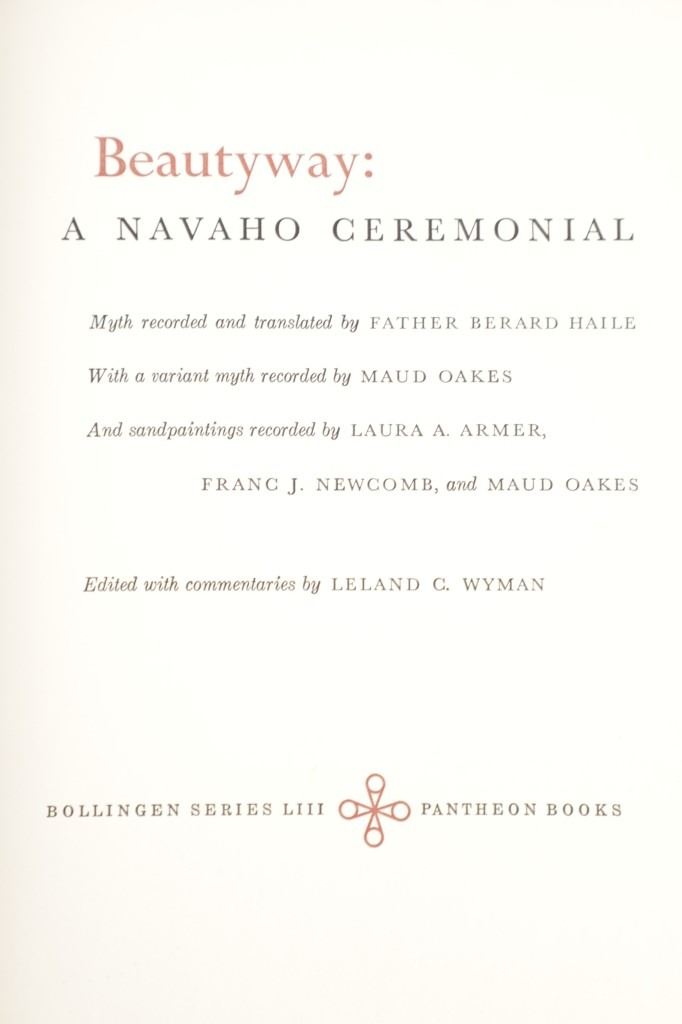 Featured in this lot is this 1957 edition of Beautyway: A Navaho Ceremonial by Leland Wyman. The book features a wonderfully and professionally crafted construction that shows a bound with tan cloth on boards and burgundy cloth on the spine with gilt titles on spine and gilt decoration on the front board. The condition of this book is well preserved that shows some wear to the cover and shows browning to the pages consistent with age. The measurements of this book is 10 1/4" x 7 3/4". The collective weight of this book is 2lb 8oz.