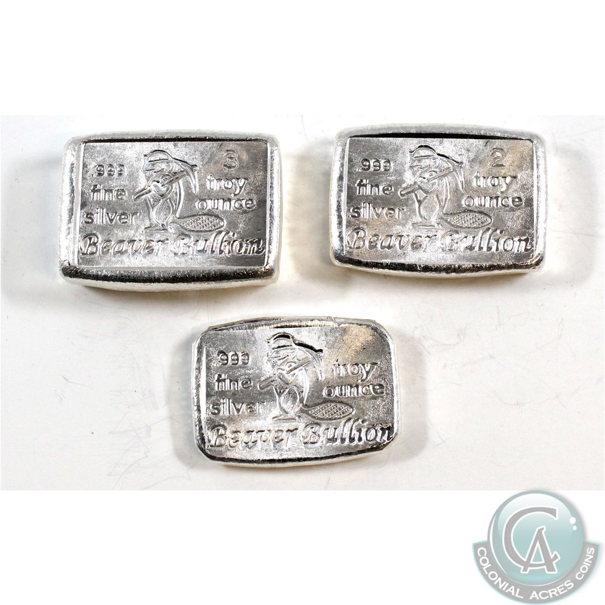 Beaver Bullion 1oz , 2oz, 3oz Fine Silver Bars (TAX Exempt). 3pcs.
