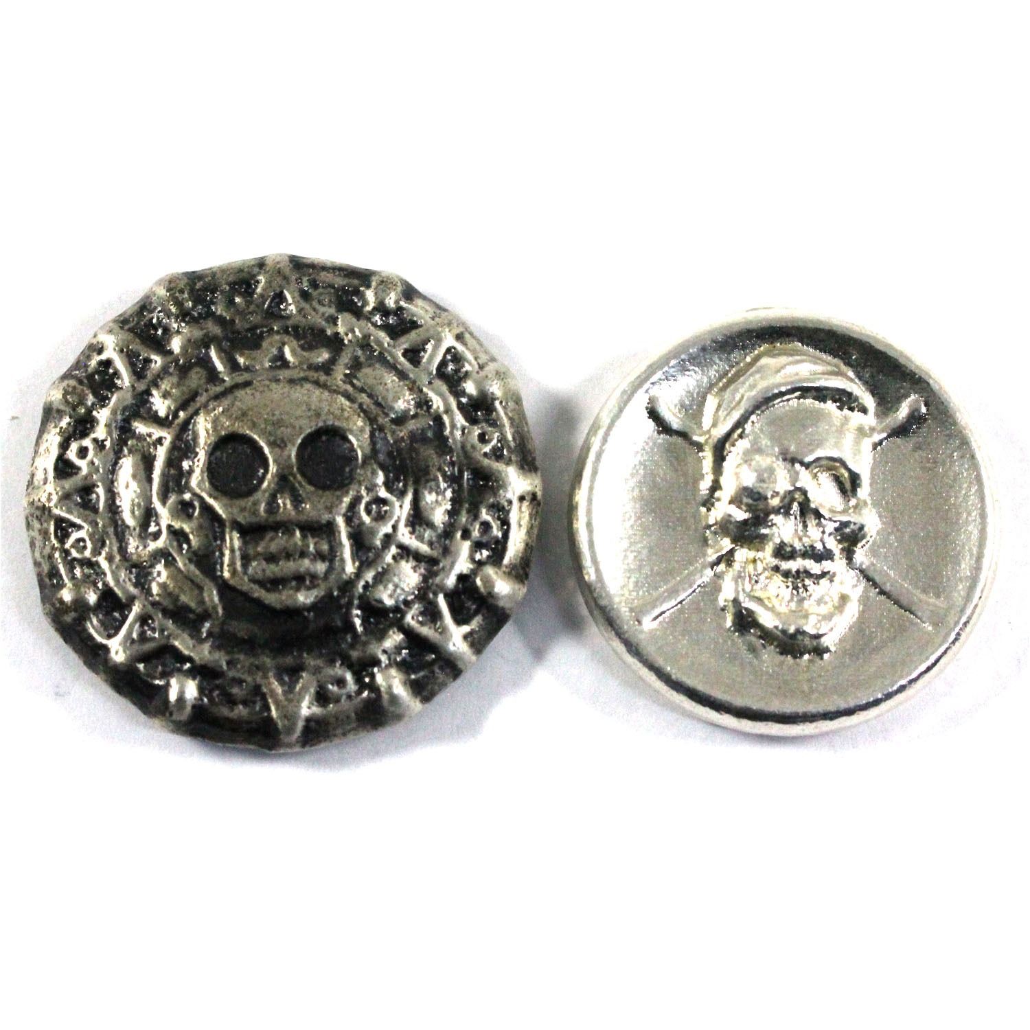 Beaver Bullion 2oz Pirate Skull & 3oz Day of the Dead .999 Fine Silver Poured Rounds. 2pcs (TAX Exempt)