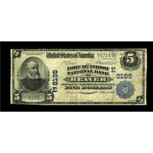 Beaver, PA - $5 1902 Plain Back Fr. 599 The Fort McInto