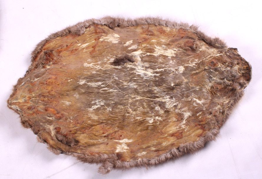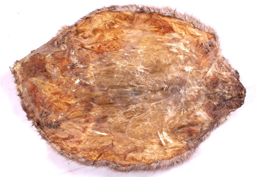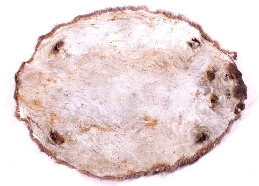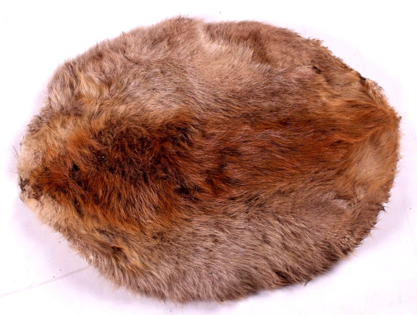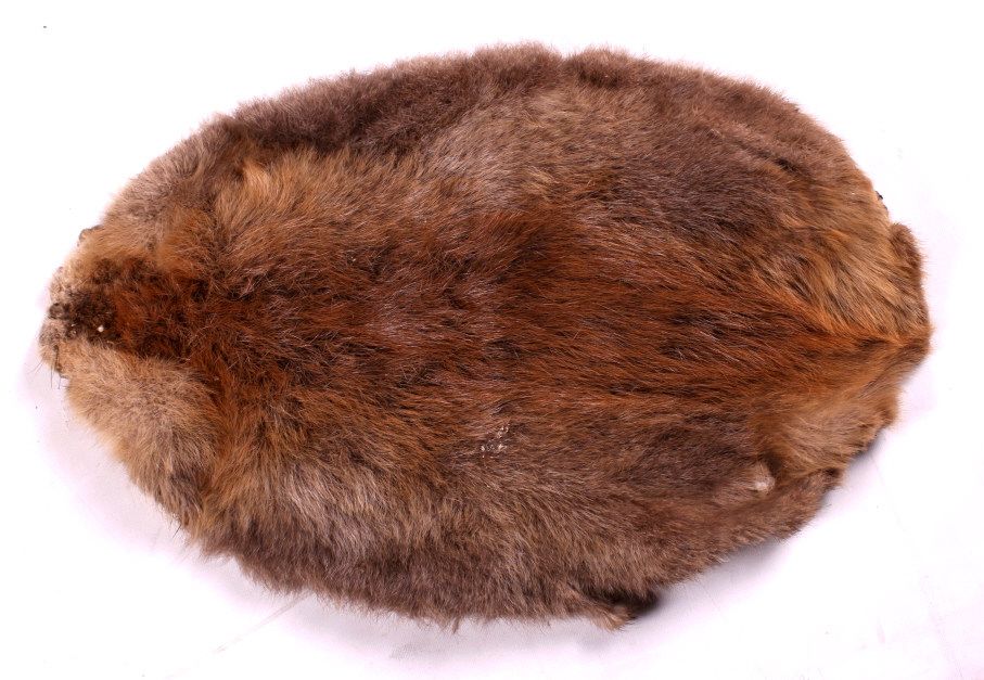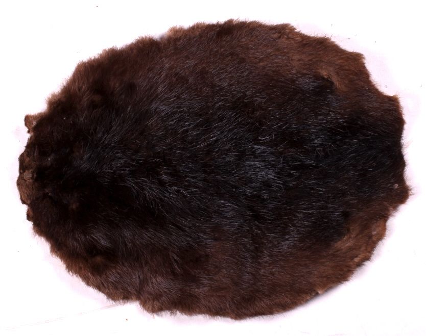 This is a collection of three beaver pelts. Two of the pelts have a lighter tone and the third one is fairly dark. Each of the pelts is in good condition. They each measure about 18" x 24".