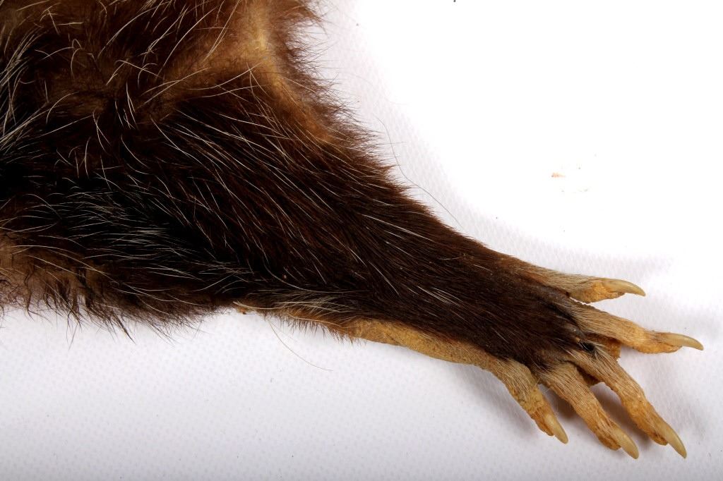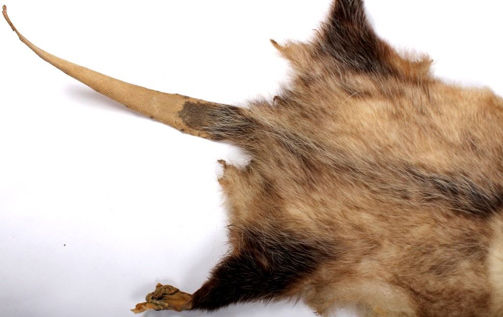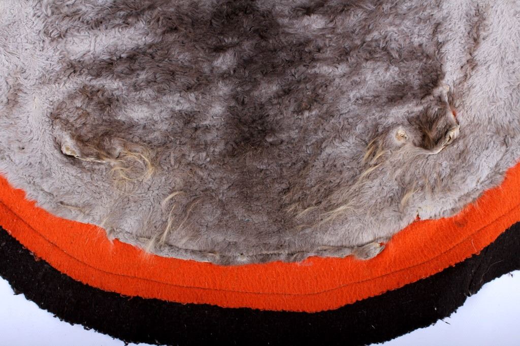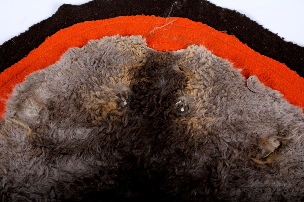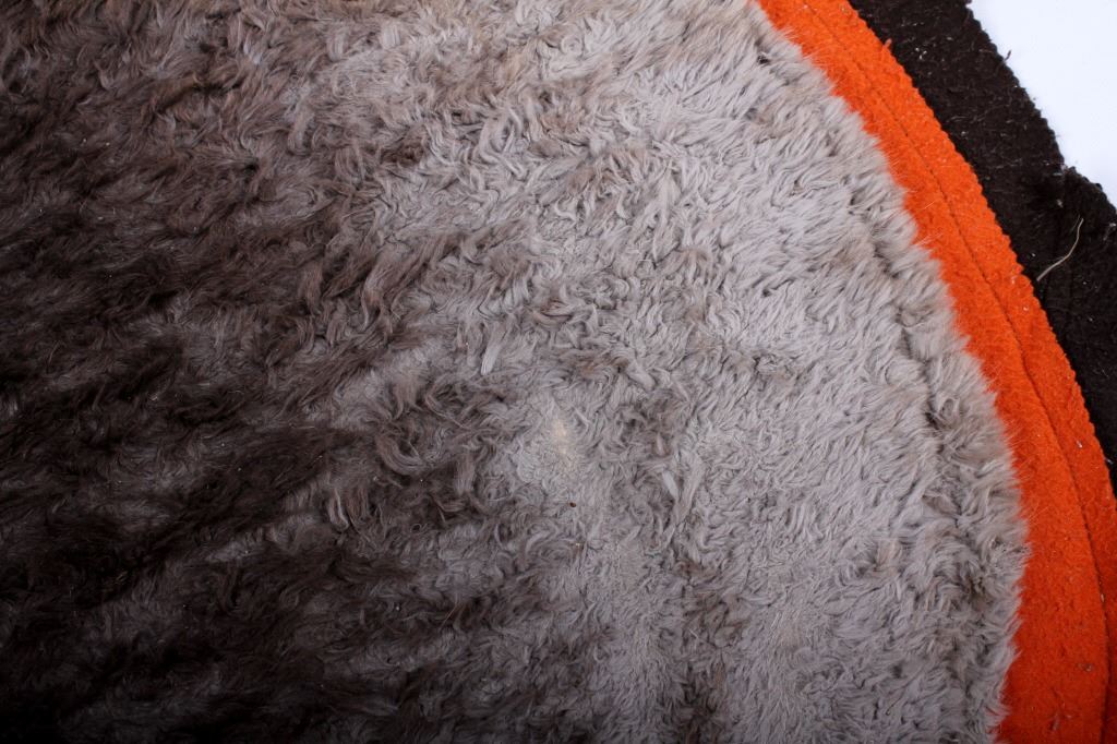 You are bidding on a professionally prepared, double felted beaver hide rug, two possum hides and one muskrat hide. The rug shows a wide border of orange on brown felt backing a grayish brown hide with matted fur. The rug is an oblong circle measuring about 29" in diameter. The two possum hides show beige to dark brown mottled fur typical of the species. One hide is stretched out and has claws and a tail ( measuring 37" x 21.5"), while the other is tubed and has no tail. The muskrat hide is also tubed and shows light to dark brown silky soft fur. The items are all in good condition.