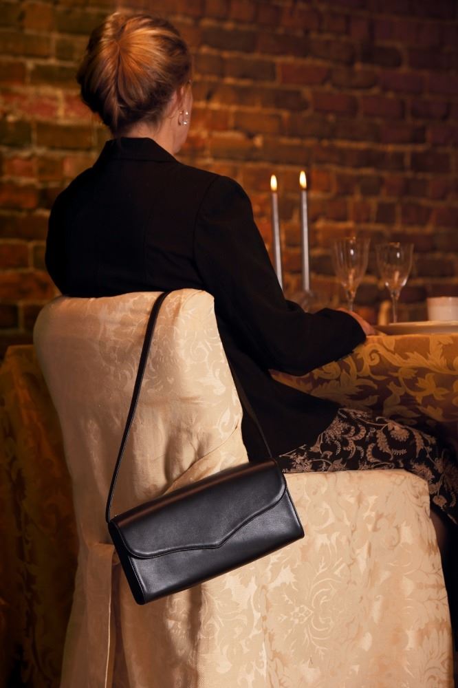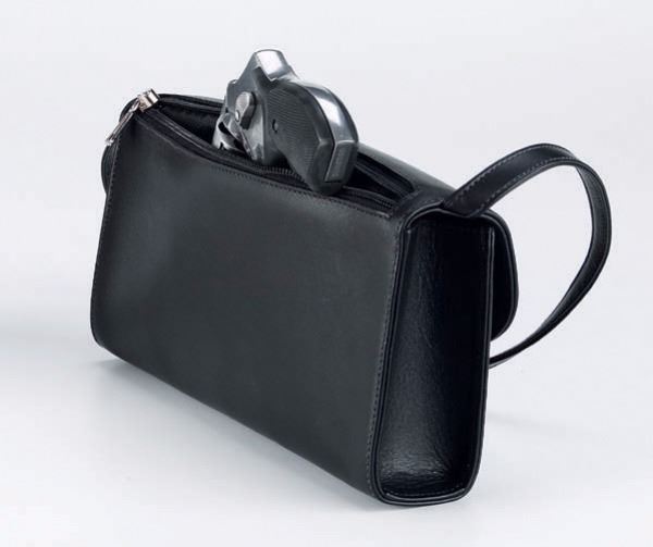 The Bebe™ works equally with evening attire or jeans and always belies its serious purpose. A compact, clutch-style handbag crafted from full-grain, glove-tanned leather, it features solid brass hardware, magnetic closure and a fully lined interior. The full-length zipper along the upper rear edge of the handbag opens to reveal a lined compartment with an elasticized holster, set at an angle to assure easy access. Like all Galco handbags, it features a locking zipper for added security. Securely concealing your most effective means of personal defense, the Bebe keeps a compact handgun available and quickly accessible.