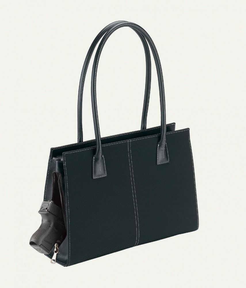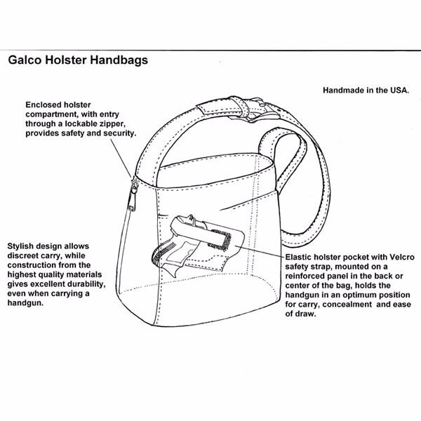 The Metropolitan™ is a favorite of the executive woman who has to have it all. It is a spacious bag that can take home important paperwork from the office and double as a shopper on the weekends! Inside features a divider and pocket for cell phone, eyeglasses, key strap, zipper pocket and top zipper closure. All Galco handbags have a self-contained, side-entry holster compartment with a locking zipper that accommodates most small and large-frame firearms. This ultra-light handbag is made of durable water resistant nylon micro fiber with full grain leather accents and handles. All hardware is nickel plated solid brass.