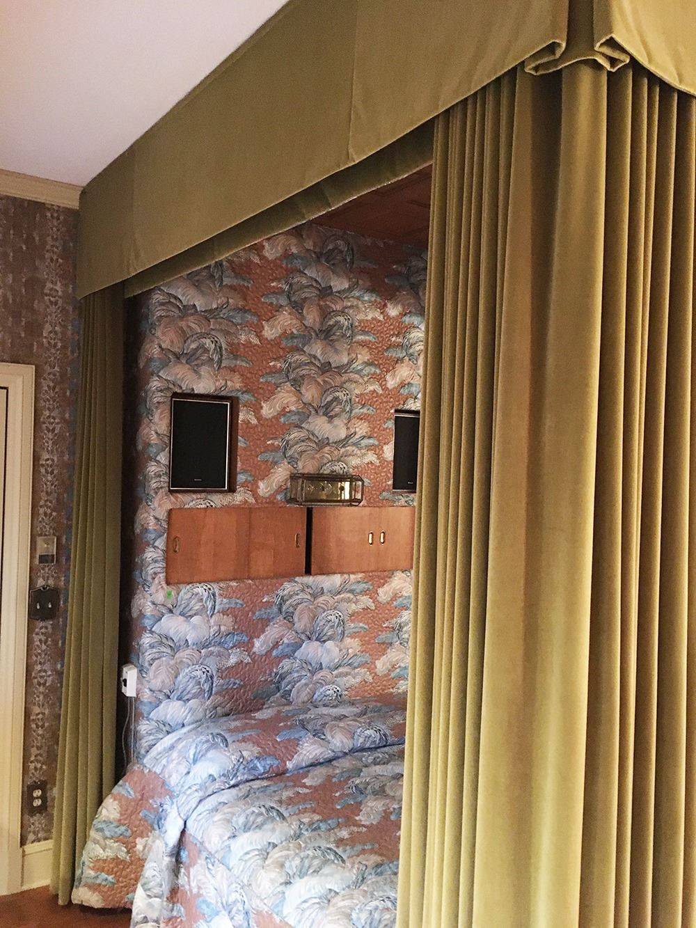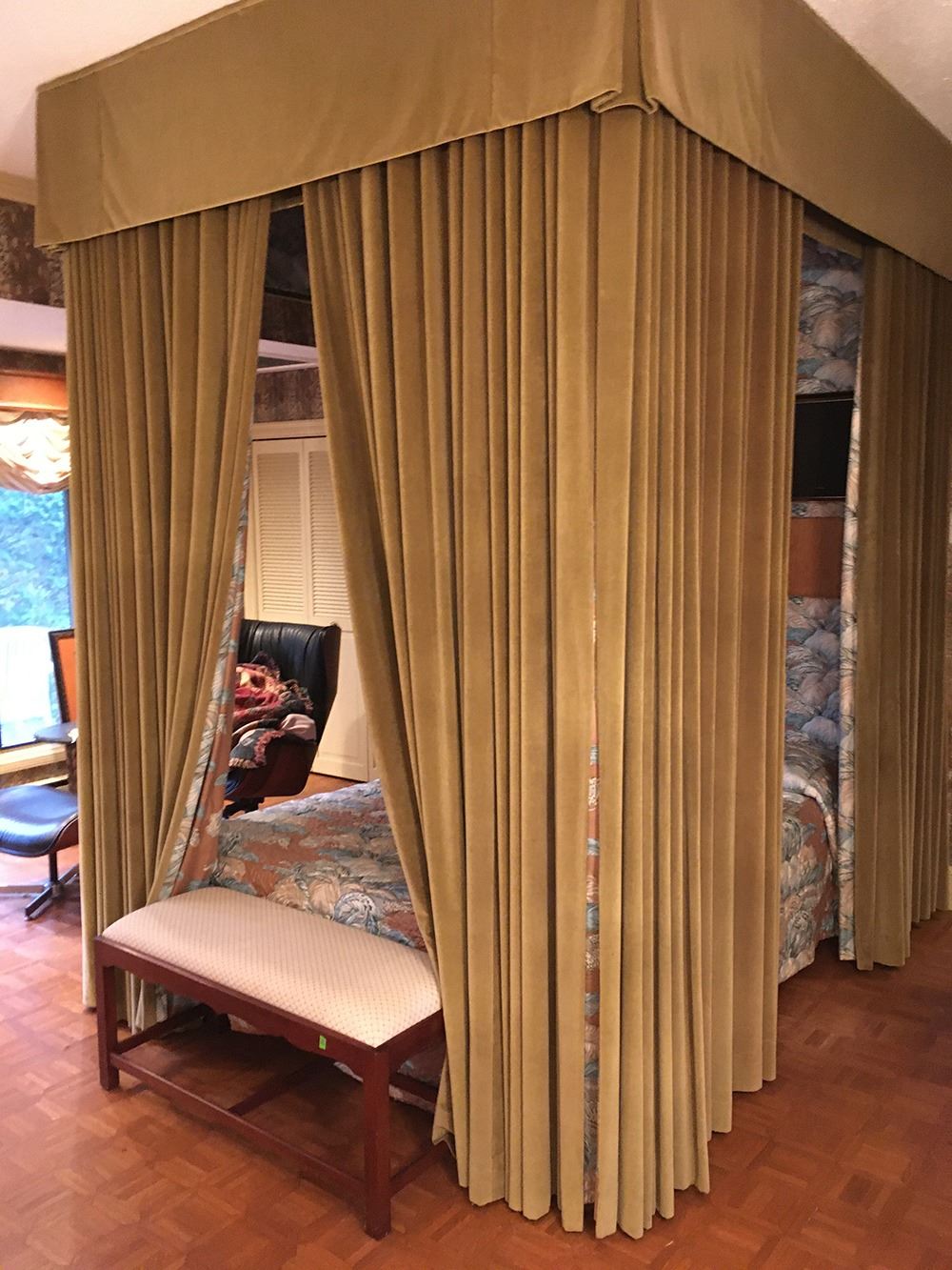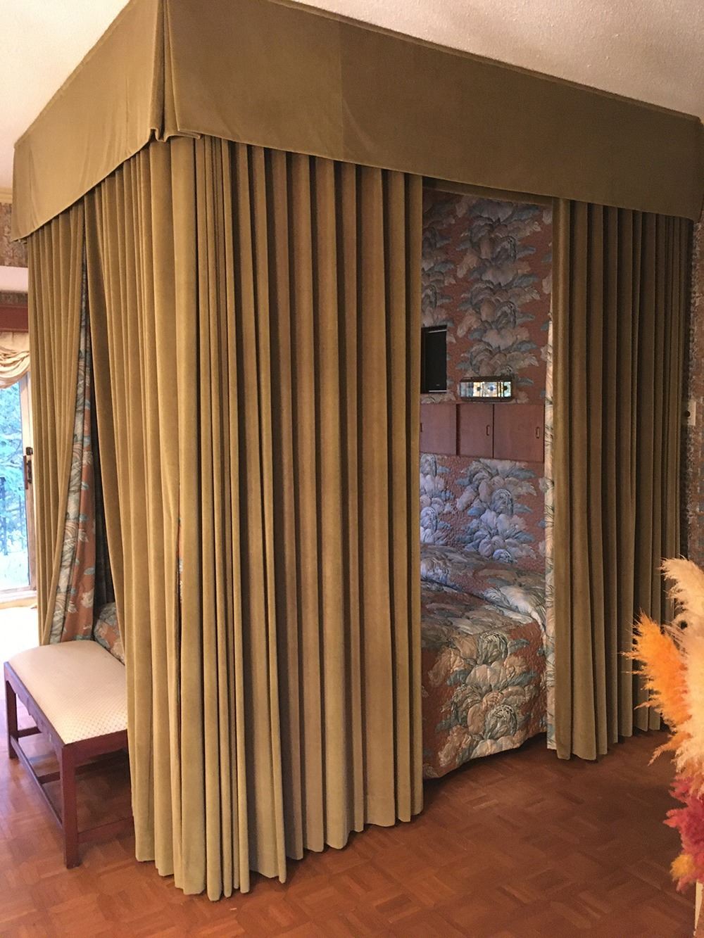 Built in bed with heavy velvet drapes, can take what isn't built in. pd