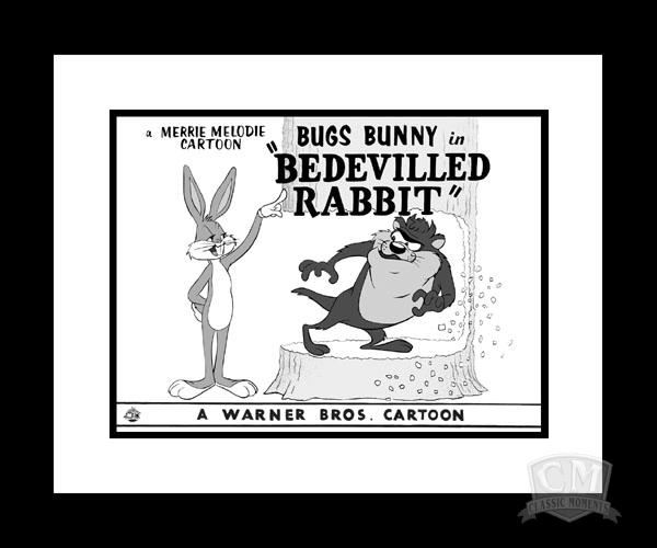 This framed limited edition 16x20 giclee lobby card entitled “Bedevilled Rabbit" is a Warner Bros. Merrie Melodies short featuring Bugs Bunny, which was released in 1957. Bugs is lost in Tasmania, and has to deal with the Tasmanian Devil. This edition is