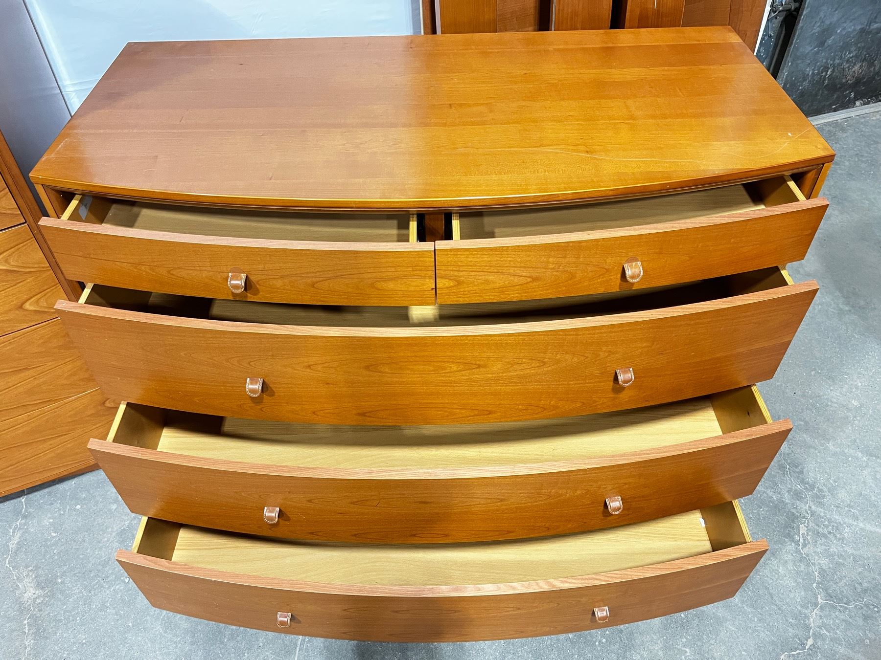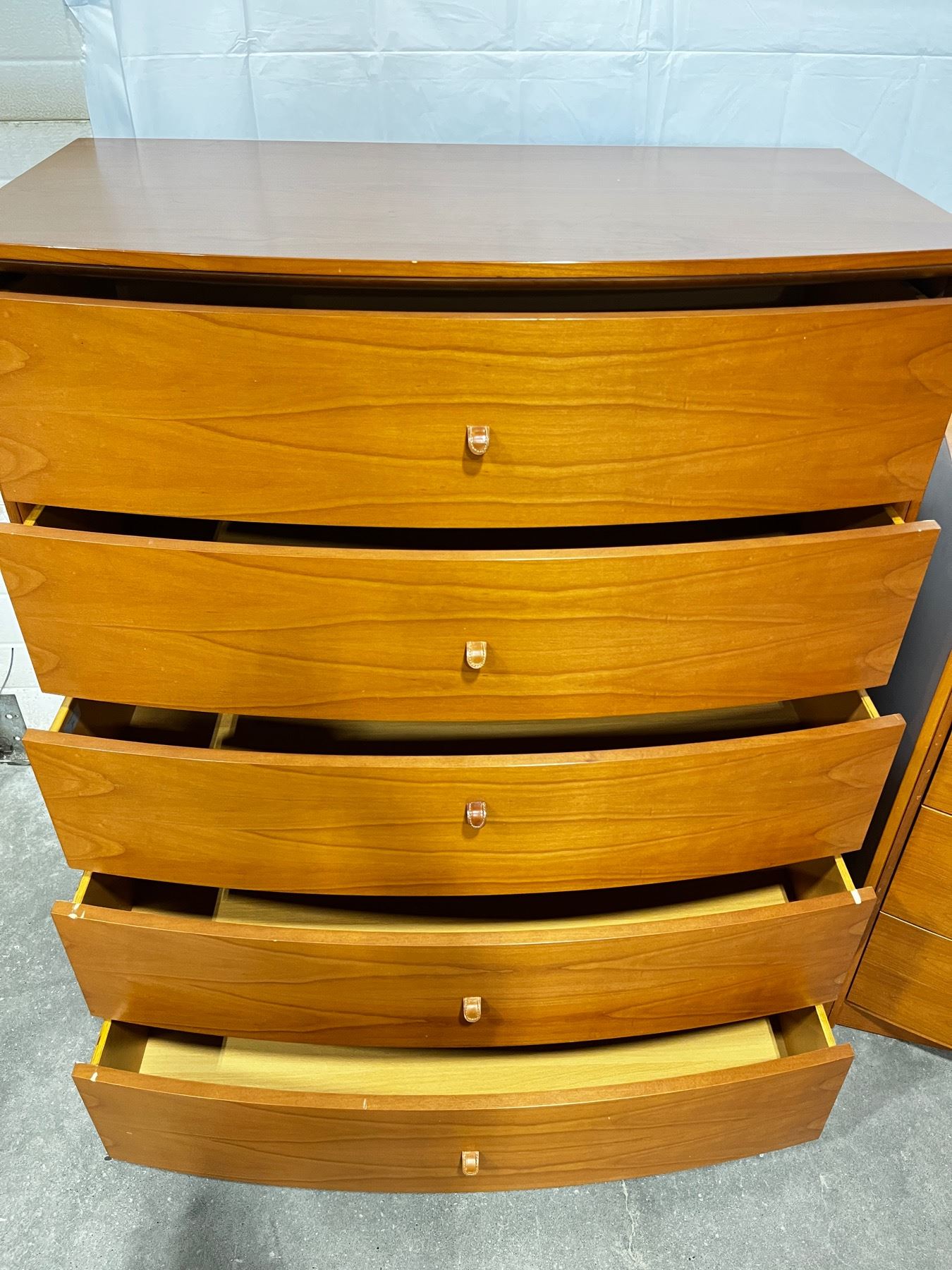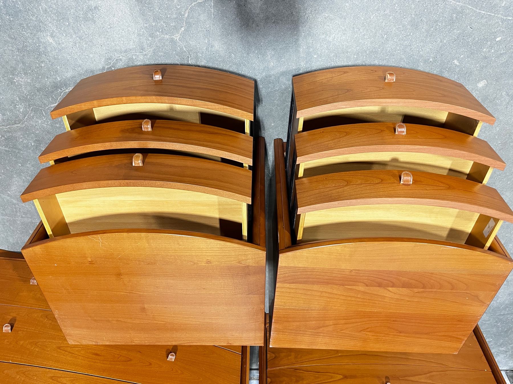Fattori - made in Italy. 8pcs,includes. King Bed Frame,2x nightstands,22"H x 23"L x 18"W. Med.Dresser 35"H x 49"L x 24"W. Large Dresser 4'H x 42"L x 23"W Some minor scratches.