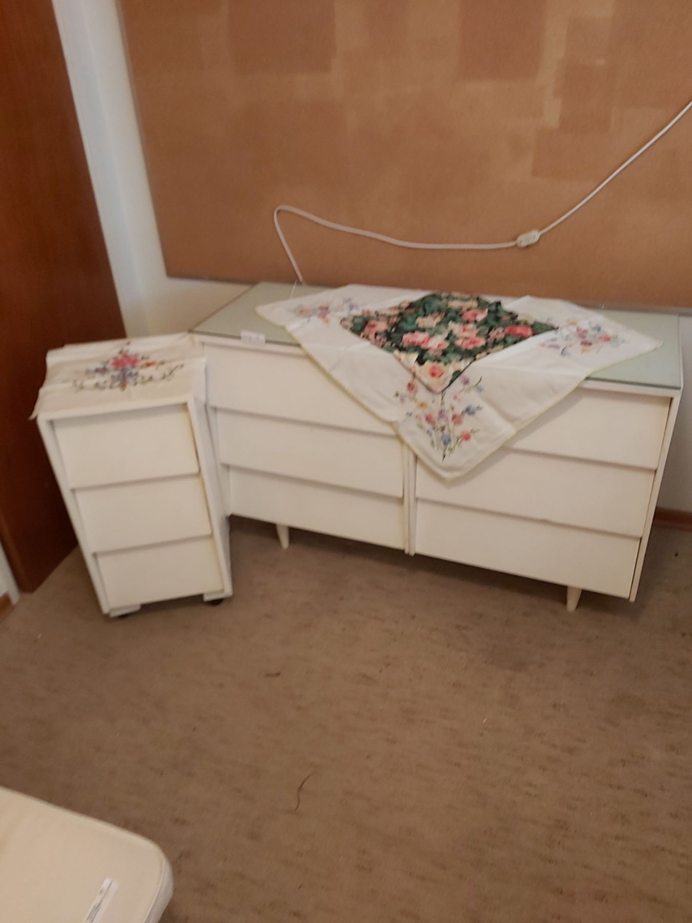 Bedside Table on Wheels 14" wide x 16 1/2 deep x 28" high & Dresser 47" wide x 18" high x 30" high