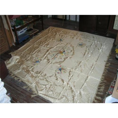 Very Nice Bedspread in silk. As you can see detailed in the pictures about design of silk and about colors of the embroidering. Probably from aprox 1920.
