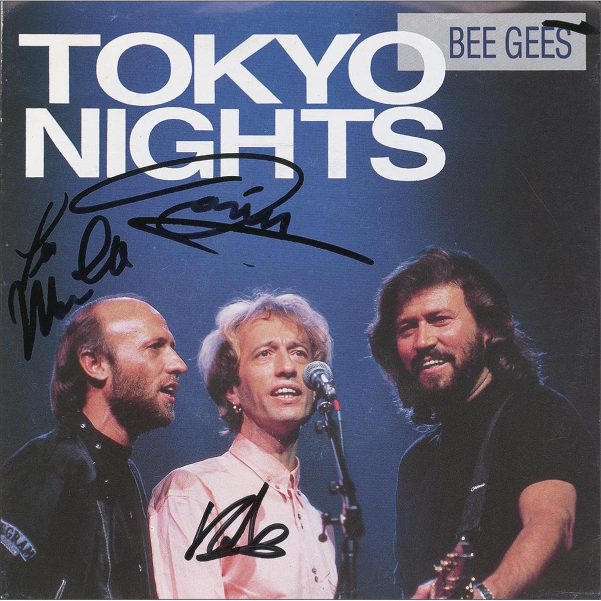 45 rpm record sleeve for Tokyo Nights, signed in black felt tip by all three (first name only). In fine condition. The record is included.