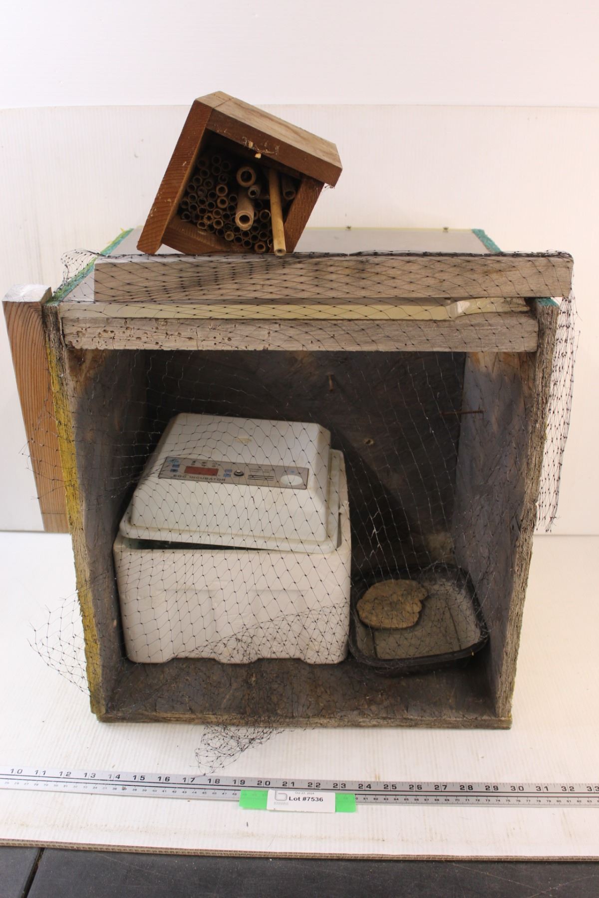 * bee house with cocoon nests in a homemade bird protector with over 200 live cocoons w/ Nest Attraction Spray -15.5" x 18" x 18.5" & Bee House