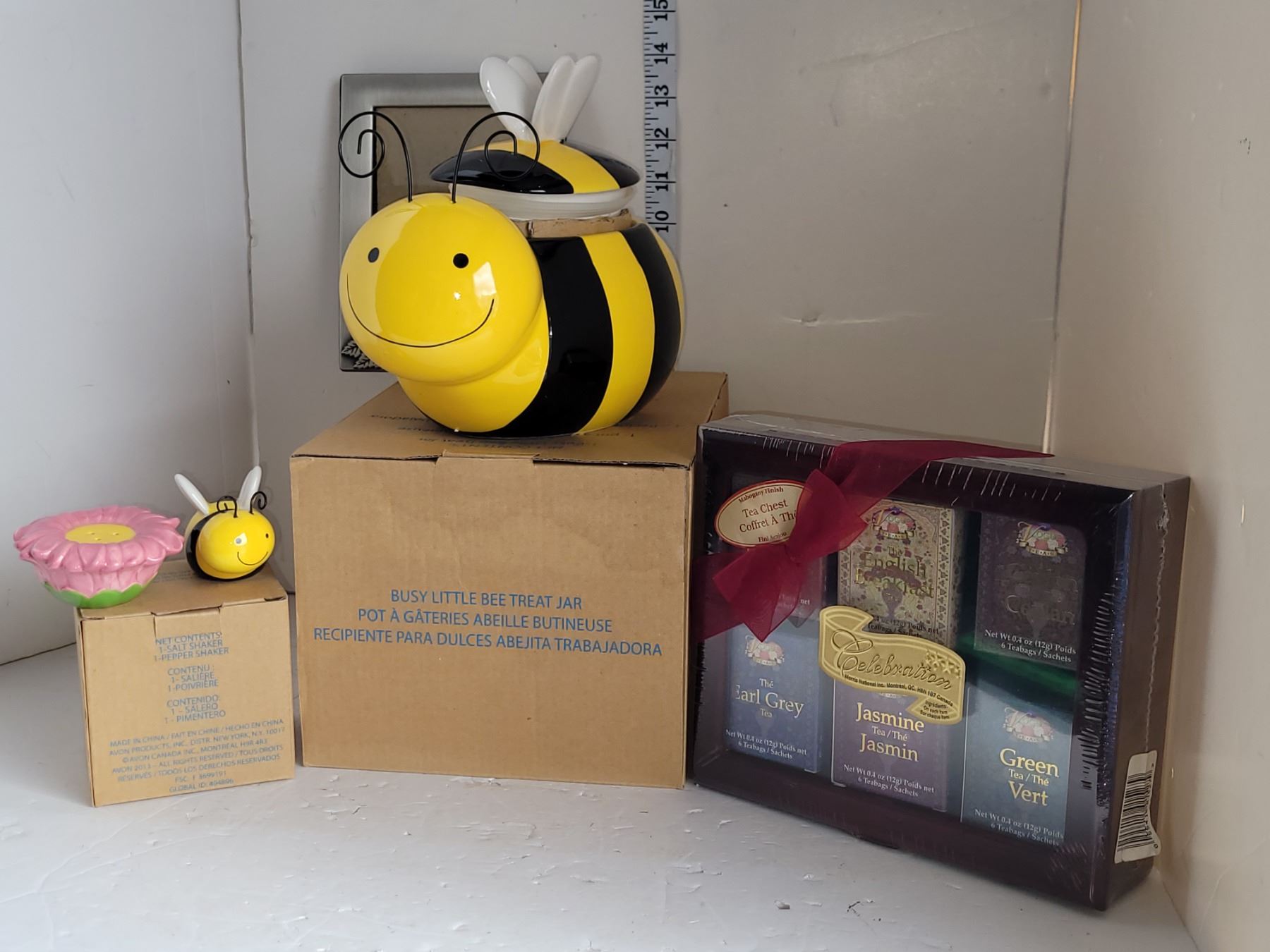 Bee Houseware Lot + Boxed Tea Set + Pewter Frame