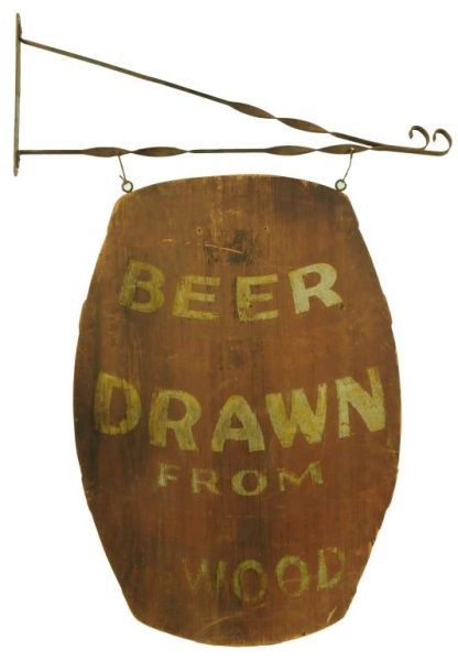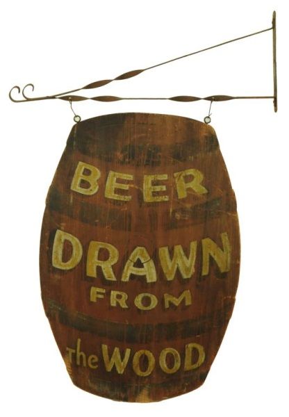 Early painted wood Saloon sign with metal hanging bracket. Measures 36" x 24 1/2".