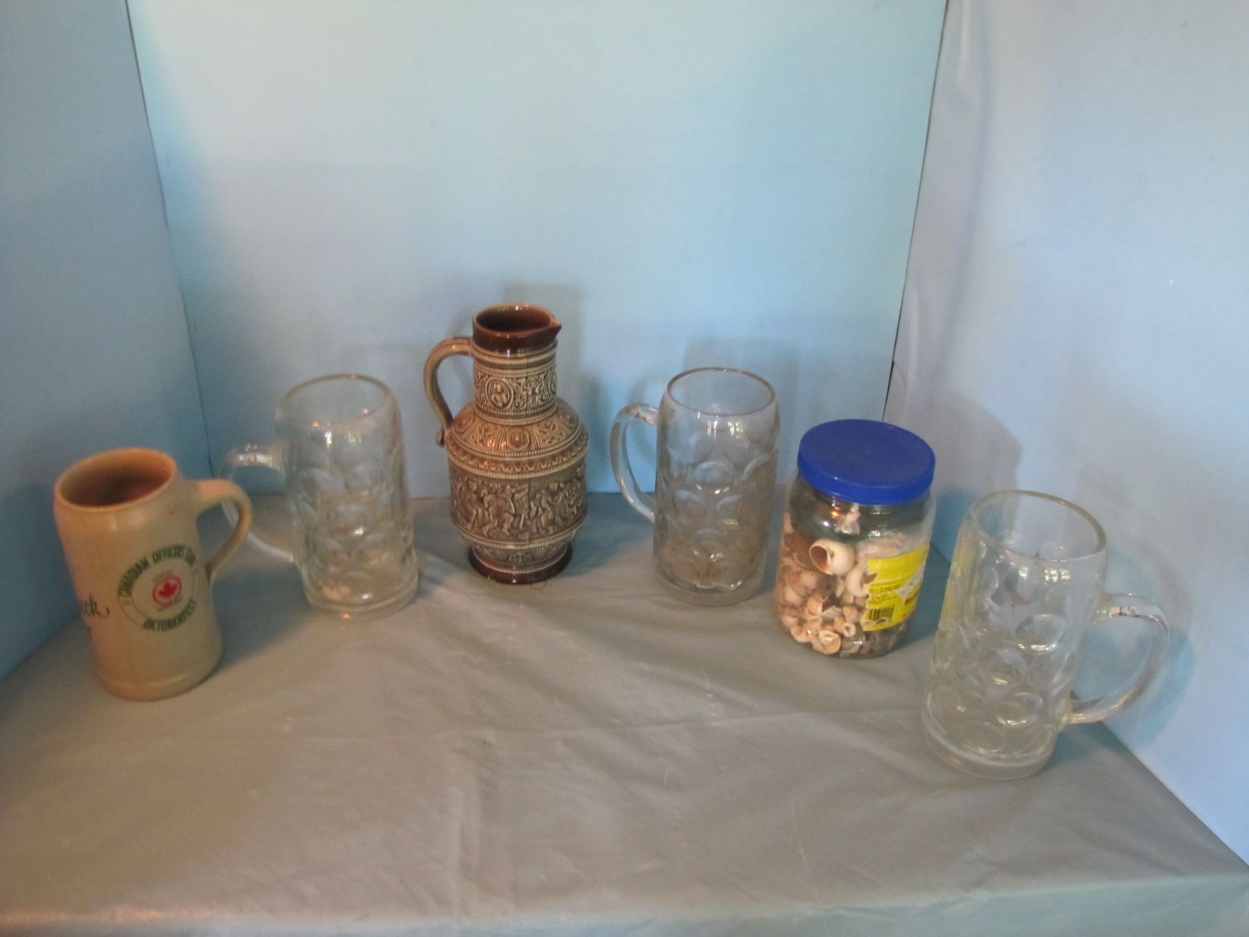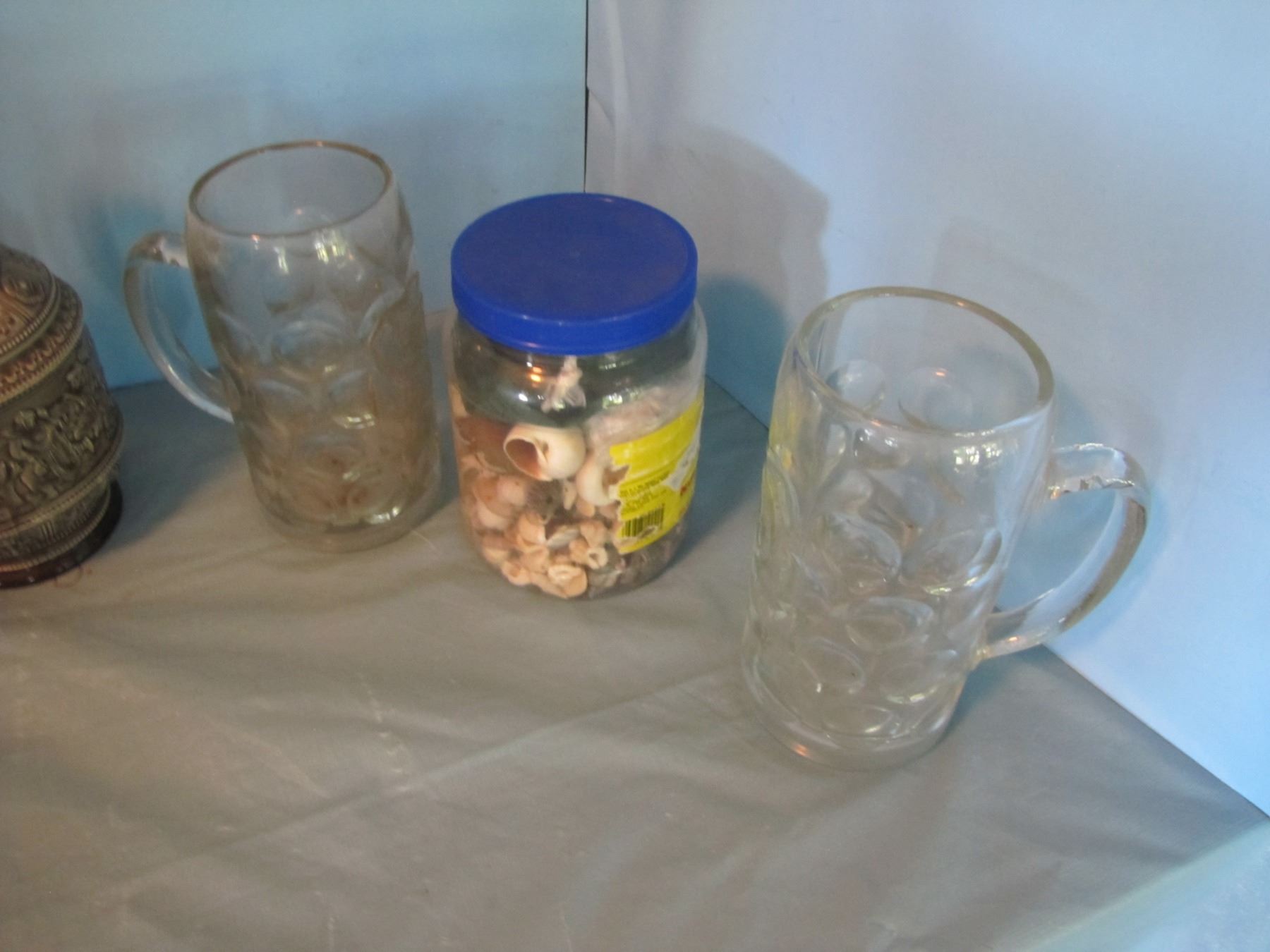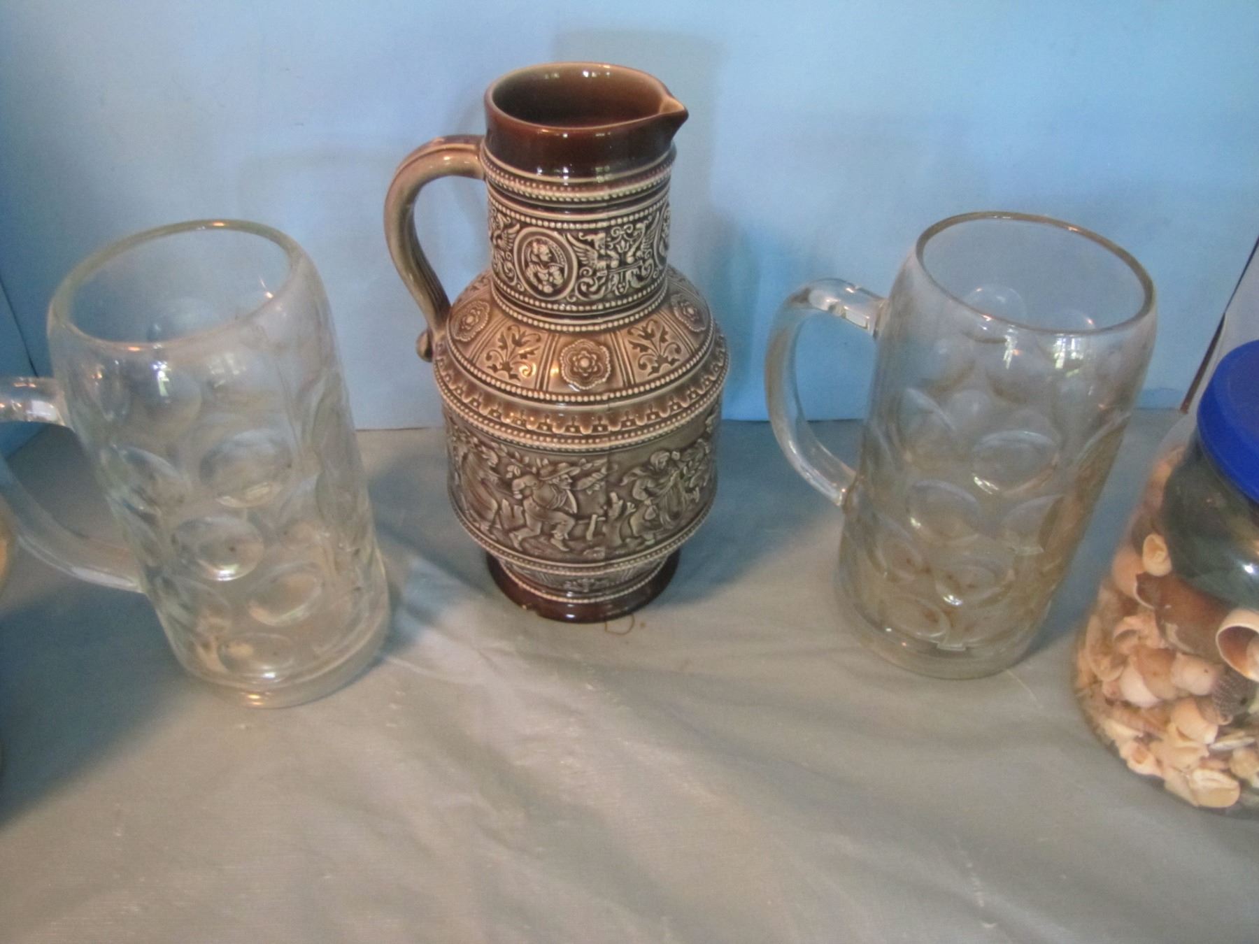 Beer glasses and seashells