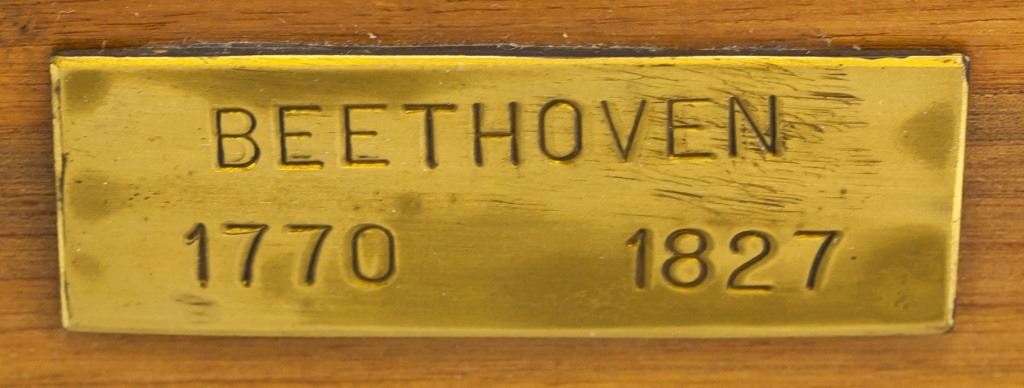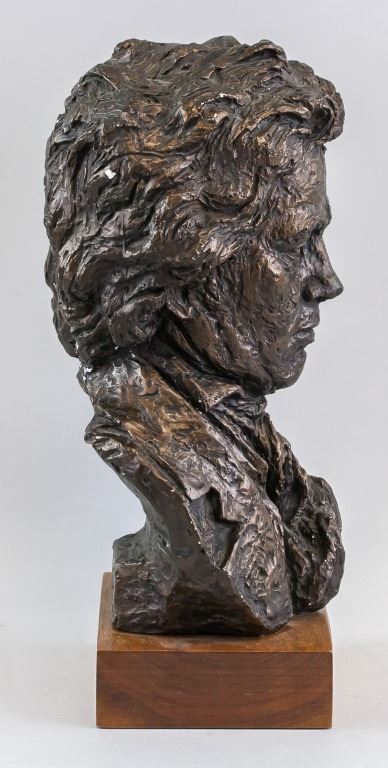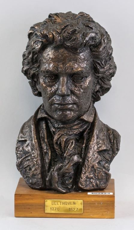 Ceramic bust. Of Beethoven. "Beethoven 1770 1827" inscribed on plaque beneath the bust. "AUSTIN PROD INC" stamped. 36 x 17 cm. 3 kg