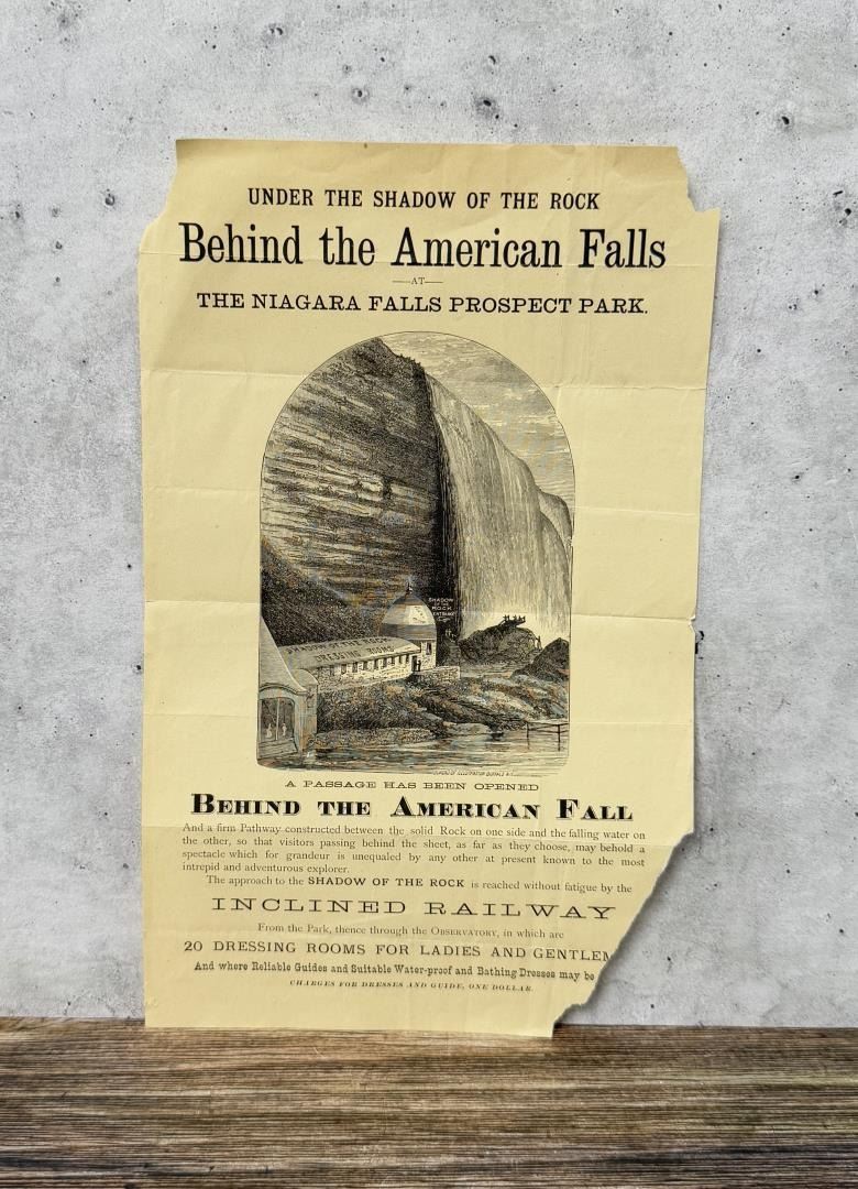 Under the Shadow of the Rock at The Niagara Falls Prospect Park. Inclined Railway. 7" by 11".
