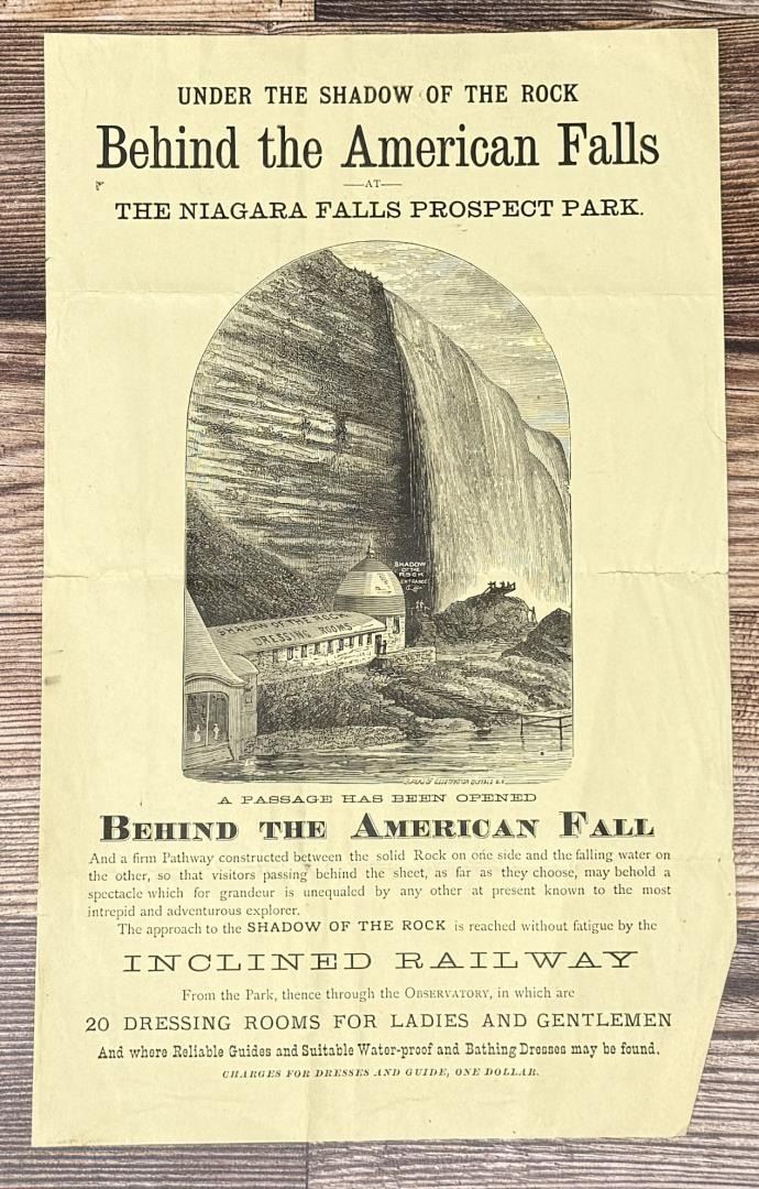 Under the Shadow of the Rock at The Niagara Falls Prospect Park. Inclined Railway. 7" by 11".