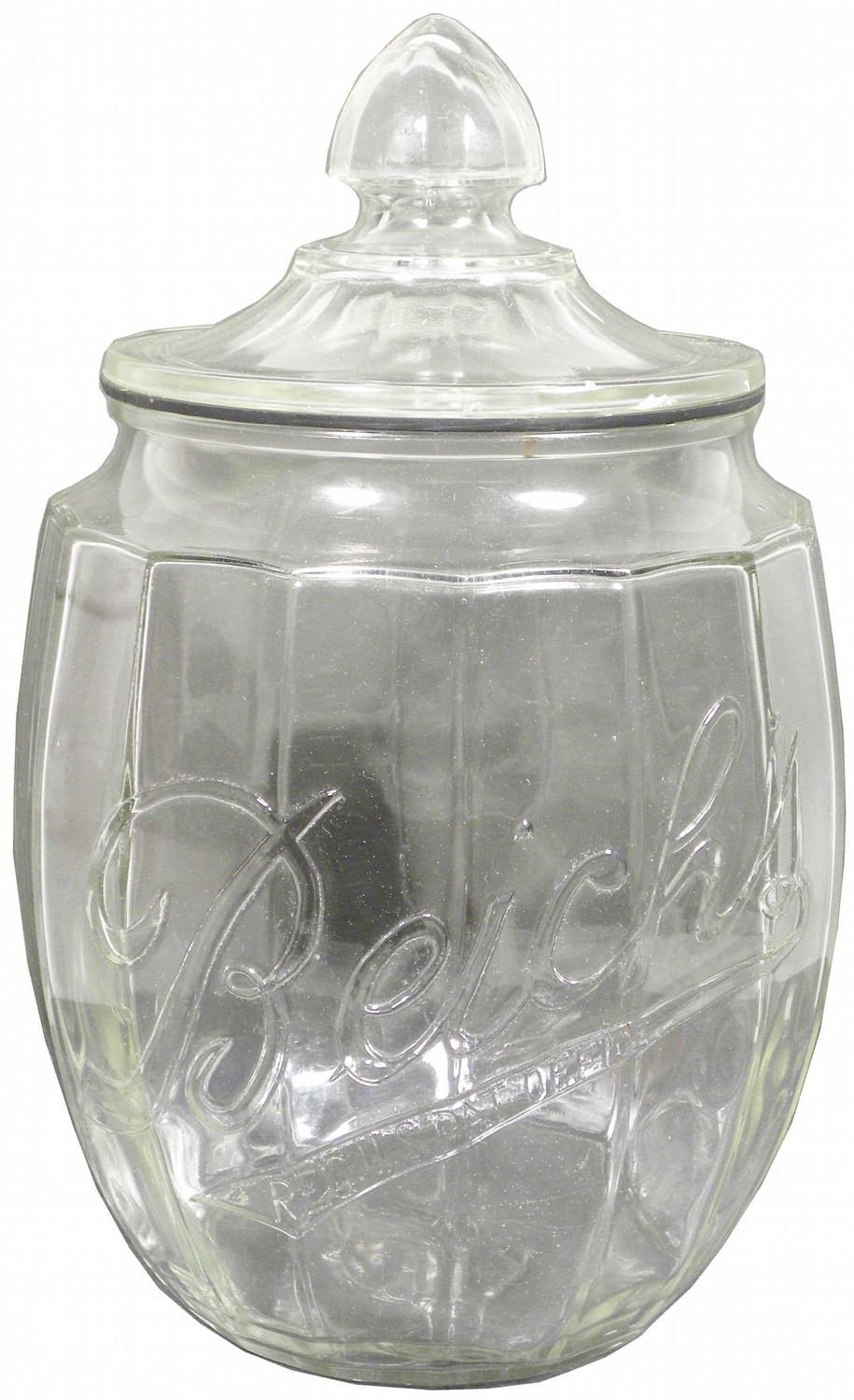 Beich's Embossed Glass Store Jar. No chips or cracks. 8 1/2 inch diameter X 14 inches tall.
