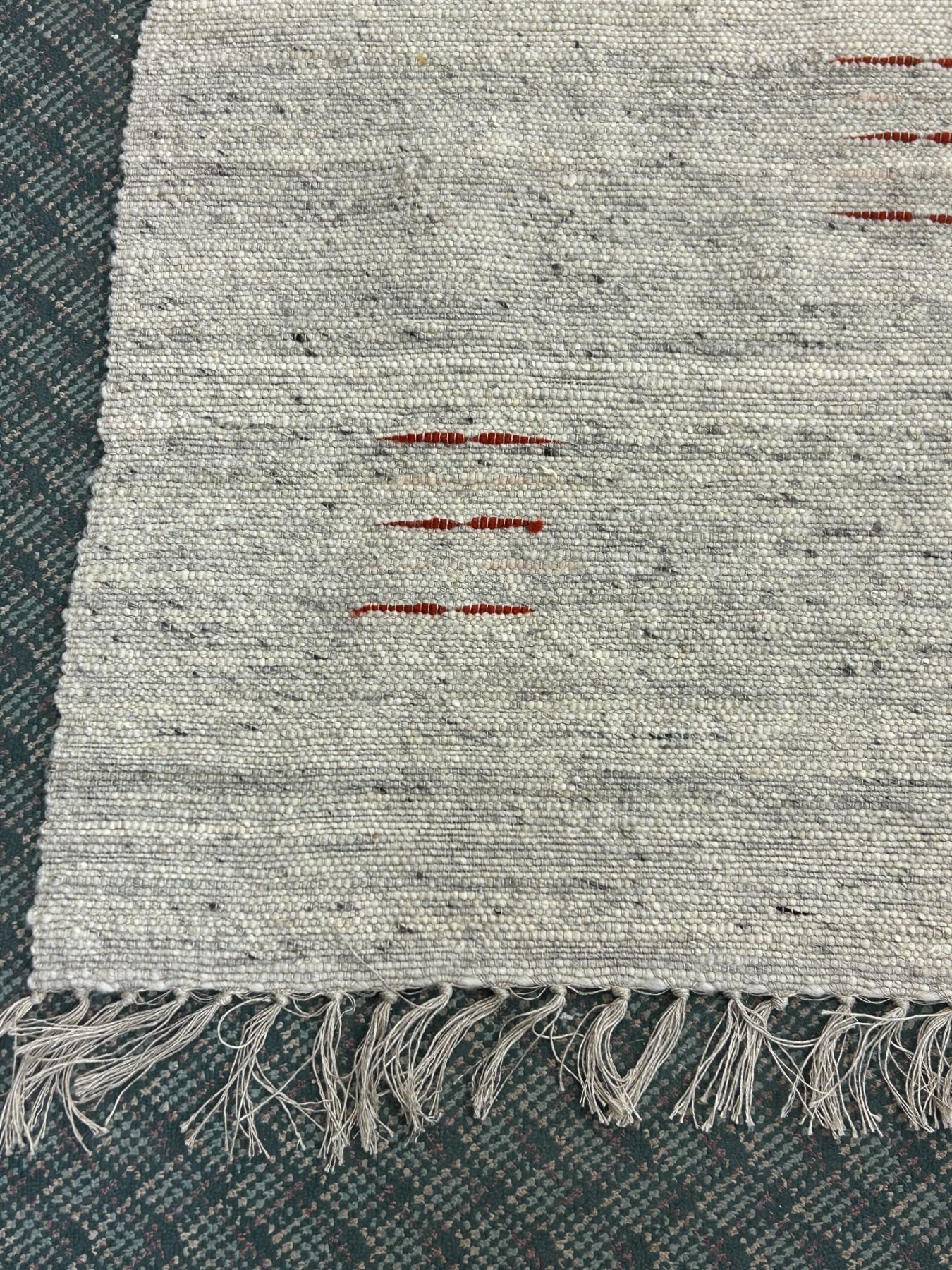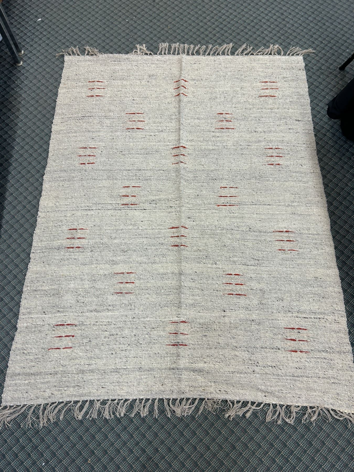 Beige Aztec Folk Style Rug with Orange Accents 77  x 58