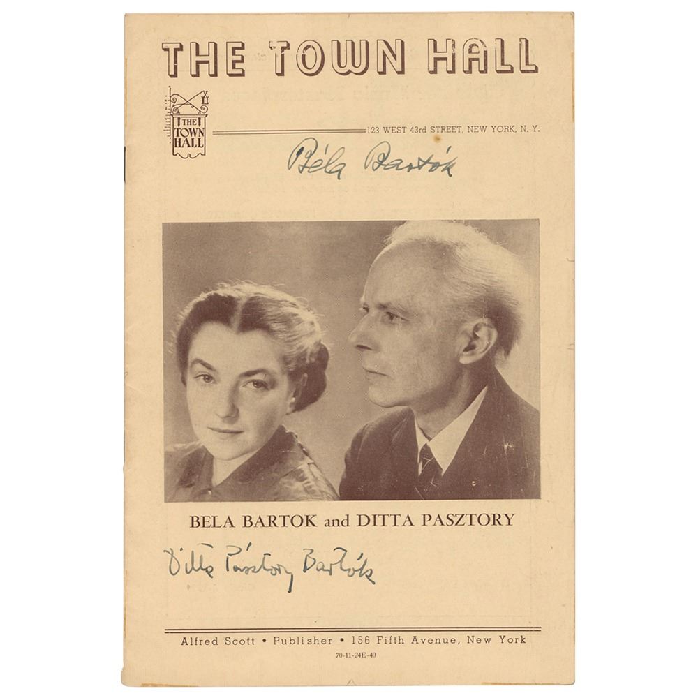 Program for Bela Bartok and his wife, the pianist Ditta Pasztory, at the Town Hall in New York on November 24, 1940, 14 pages, 6 x 9, signed on the front cover in fountain pen, "Bela Bartok" and "Ditta Pasztory Bartok." In fine condition, with light handling wear.