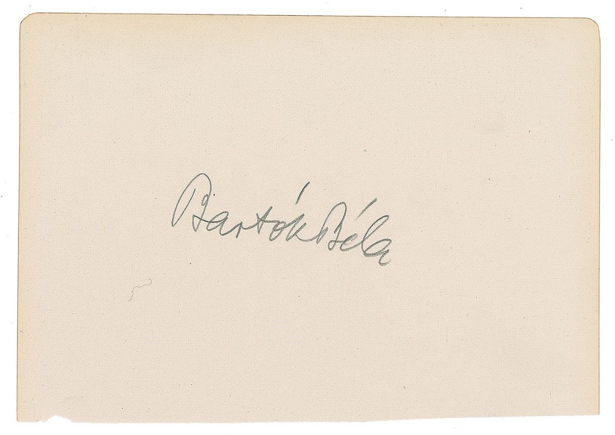 Pencil signature, “Bartok Bela,” on an off-white 6.5 x 4.5 album page. In fine condition.