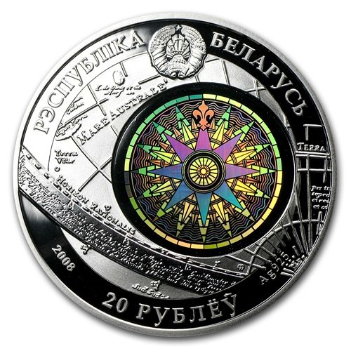 Belarus 2008 Silver Sailing Ships with Hologram -Sedov **|**|** Year: 2008 ; Mint Mark: BU ; Grade: S - San Francisco ; Denomination: 20 RU ; MSRP: $100