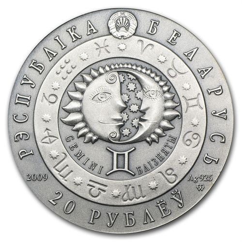 Belarus 2009 Oxidized Silver 20 Rubles Zodiac Signs - G **|**|** Year: 2009 ; Mint Mark: Brilliant Uncirculated ; Grade: P - Perth Mint ; Denomination: 20 RU ; MSRP: $100