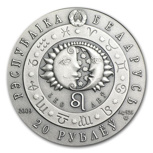 Belarus 2009 Oxidized Silver 20 Rubles Zodiac Signs - L **|**|** Year: 2009 ; Mint Mark: Brilliant Uncirculated ; Denomination: 20 RU ; MSRP: $100
