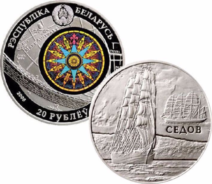Belarus, Twenty Roubles, 2008, Silver Proof Sedov Sailing (KM.191)