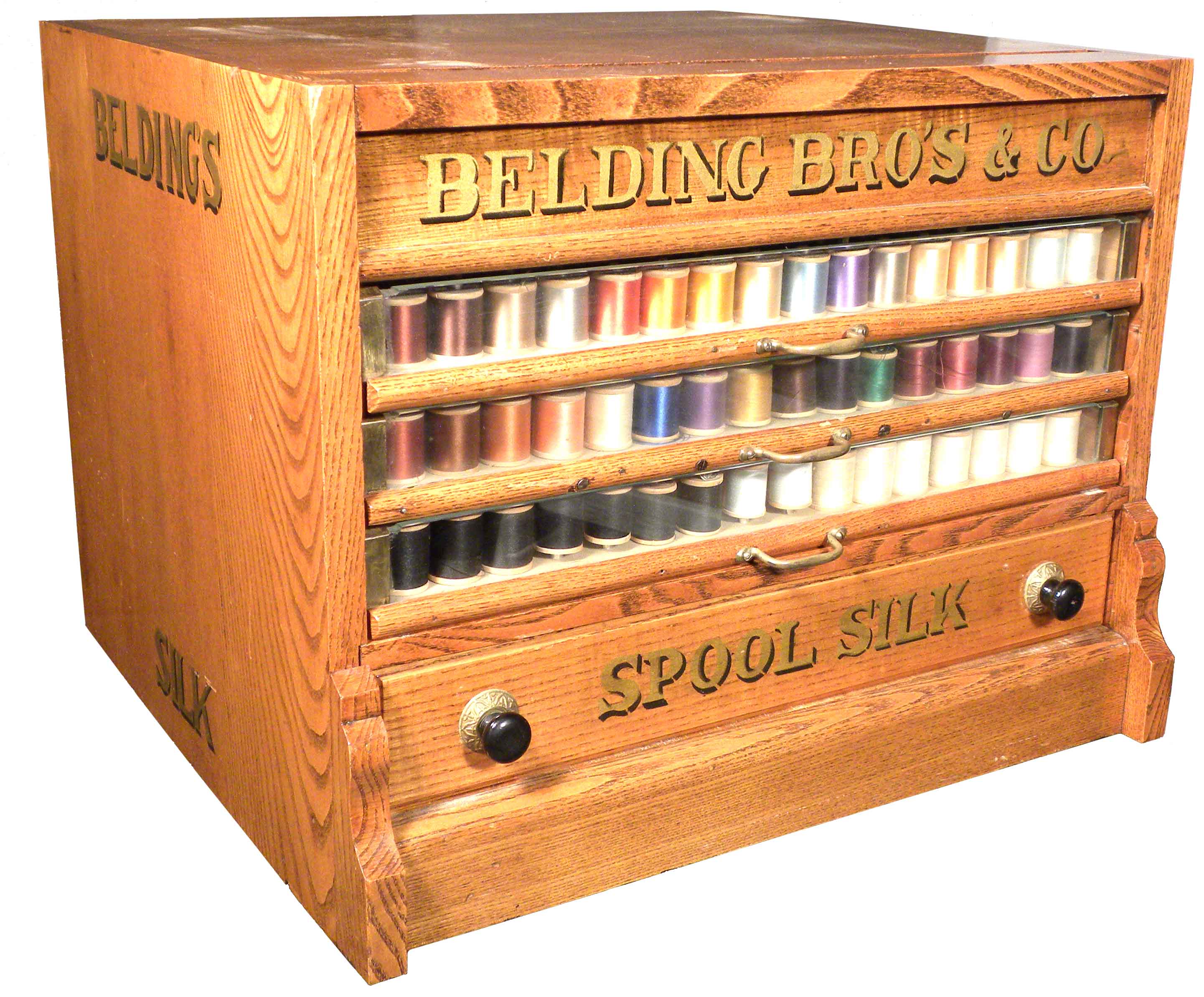 Belding Bros' & Co. Four Drawer Spool Cabinet. Excellent original condition. 20 X 15 1/2 X 16 1/2 inches.