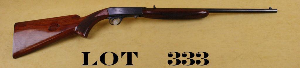 Belgian Browning .22 caliber semi-automatic rifle, Grade 1. Early production. Serial number 1T12783. In fine to near excellent condition, 92-95% original blue. Near excellent wood, just slight handling andlimited use. Est: $250 - $500
