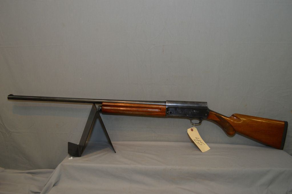 Belgian Browning Model Auto 5 .12 Ga 2 3/4" Semi Auto Shotgun w/30" bbl [ blued finish, fading in carry areas, lightly engraved receiver, gloss finished rounded pistol grip stock, cracked & repaired behind receiver, and chipped at toe, note ; original butt plate but has foam insert & one non orig butt plate screw ] Ser # 2M67626